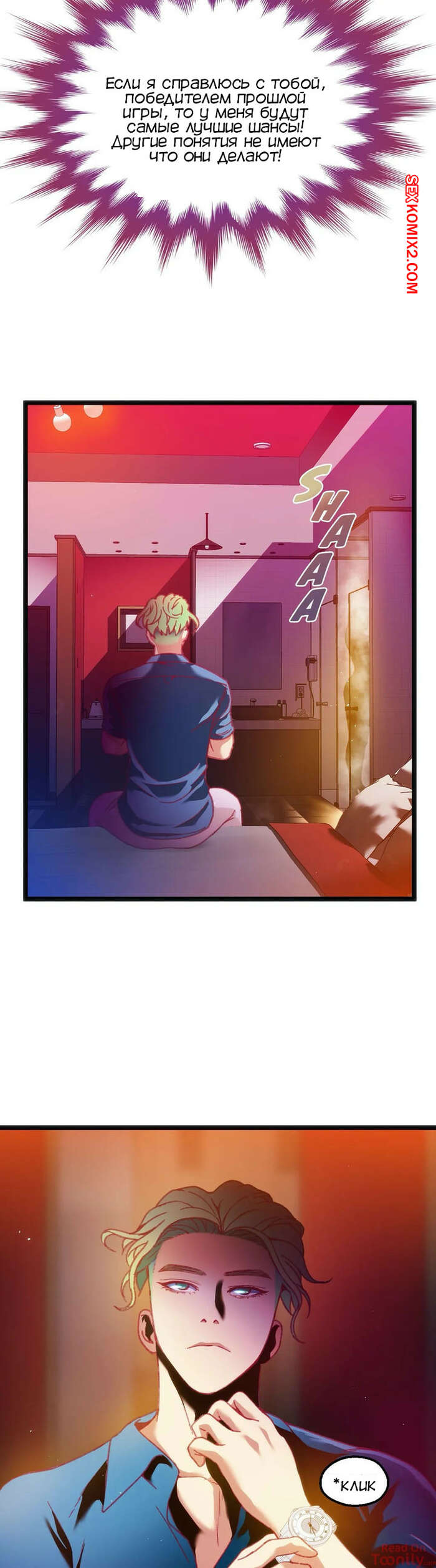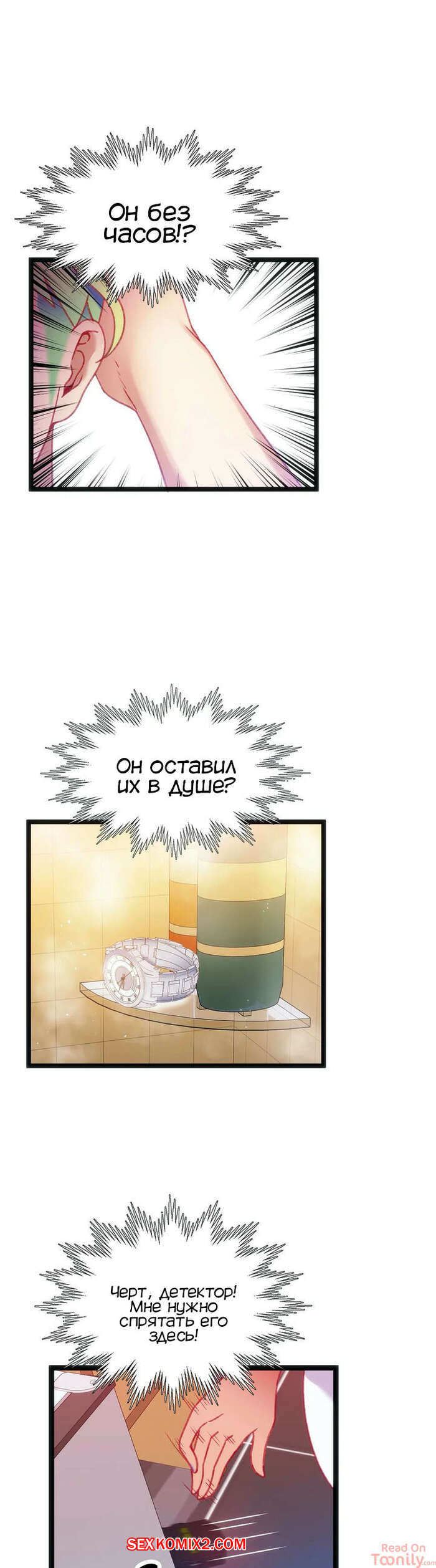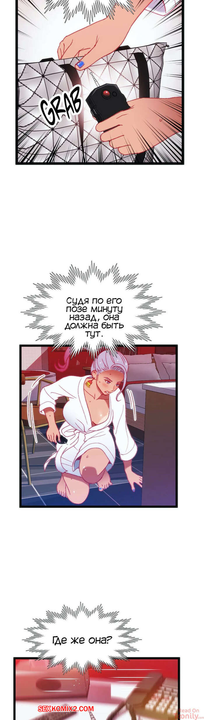 Порно комикс Игра с телом. Часть 28. The Body Game Бора вышла из душа и пока Досунг мылся, она стала осматривать его штаны и искать камеру. Парень пронюхал, что она чтото заподозрила, поэтому решил как следует ее проучить.