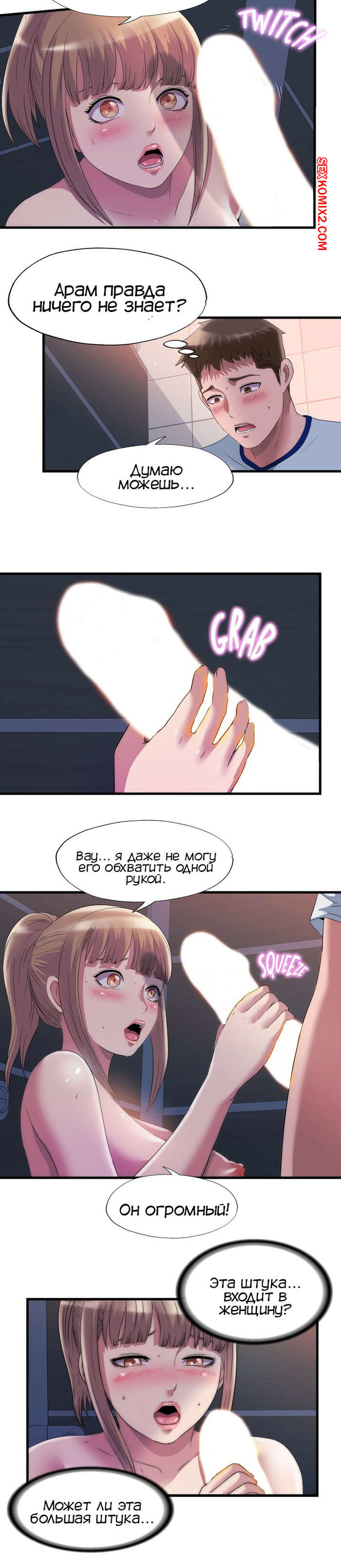 Порно комикс Жизнь бьет ключом. Часть 68. Water overflow Горячая сисястая блондинка схватила парня за руку и потащила в туалет. Она стала расспрашивать его о члене, после чего разделась перед ним и встала на колени, что рассмотреть член парня повнимательнее.