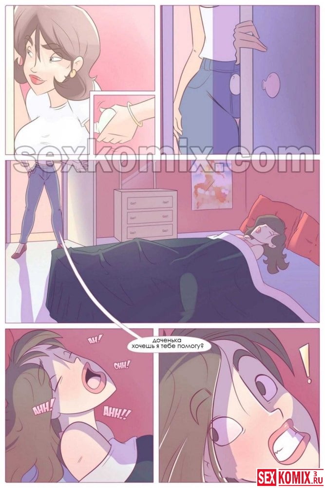 Порно комикс «Урок первый». В данном секс комиксе вы увидите историю о том, как красотка мастурбирует по ночам. Это обеспокоило её мать и она решает помочь своей дочери. Приходит к ней пока она спит и предлагает нежный лесбийский секс. Дочь соглашается и они нежно целуют друг друга.