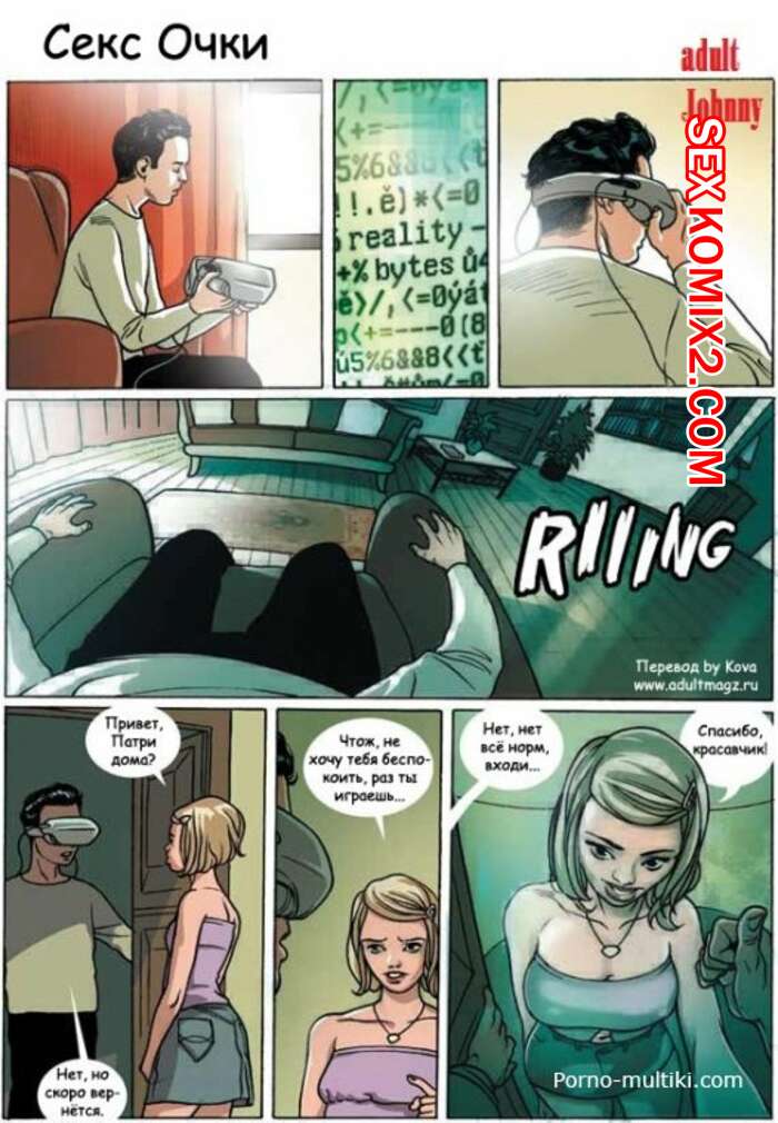 Порно комикс Секс очки Парень надел секс очки перед встречей с горячей блондинкой. Пока она не понимала что с ним происходит, парень хорошенько трахал красотку в виртуальной реальности.