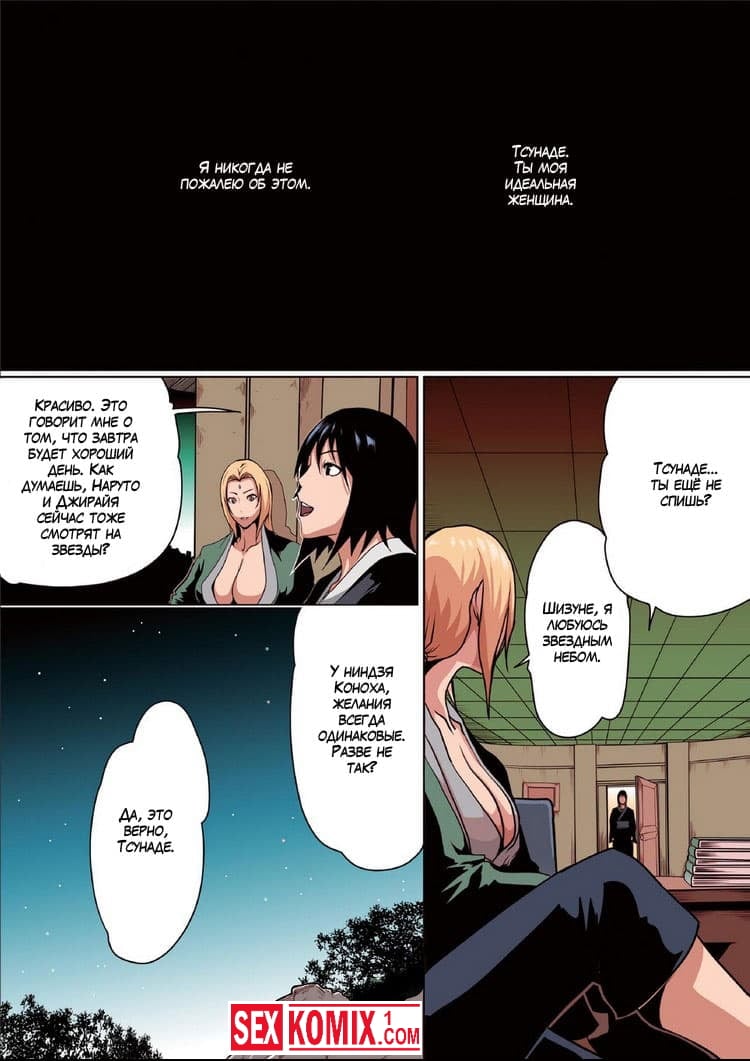 Порно комикс Любовь Наруто. Часть 1. Тсунаде женщина с аппетитными формами и большой грудью осталась дома одна. К ней в гости пришёл взрослый мужчина, он хотел уложить женщину в постель и думал, что это будет сложно. Но она сама тоже хотела этого, и покорно начала раздеваться и сближаться с мужчиной. Он занялись страстным сексом.