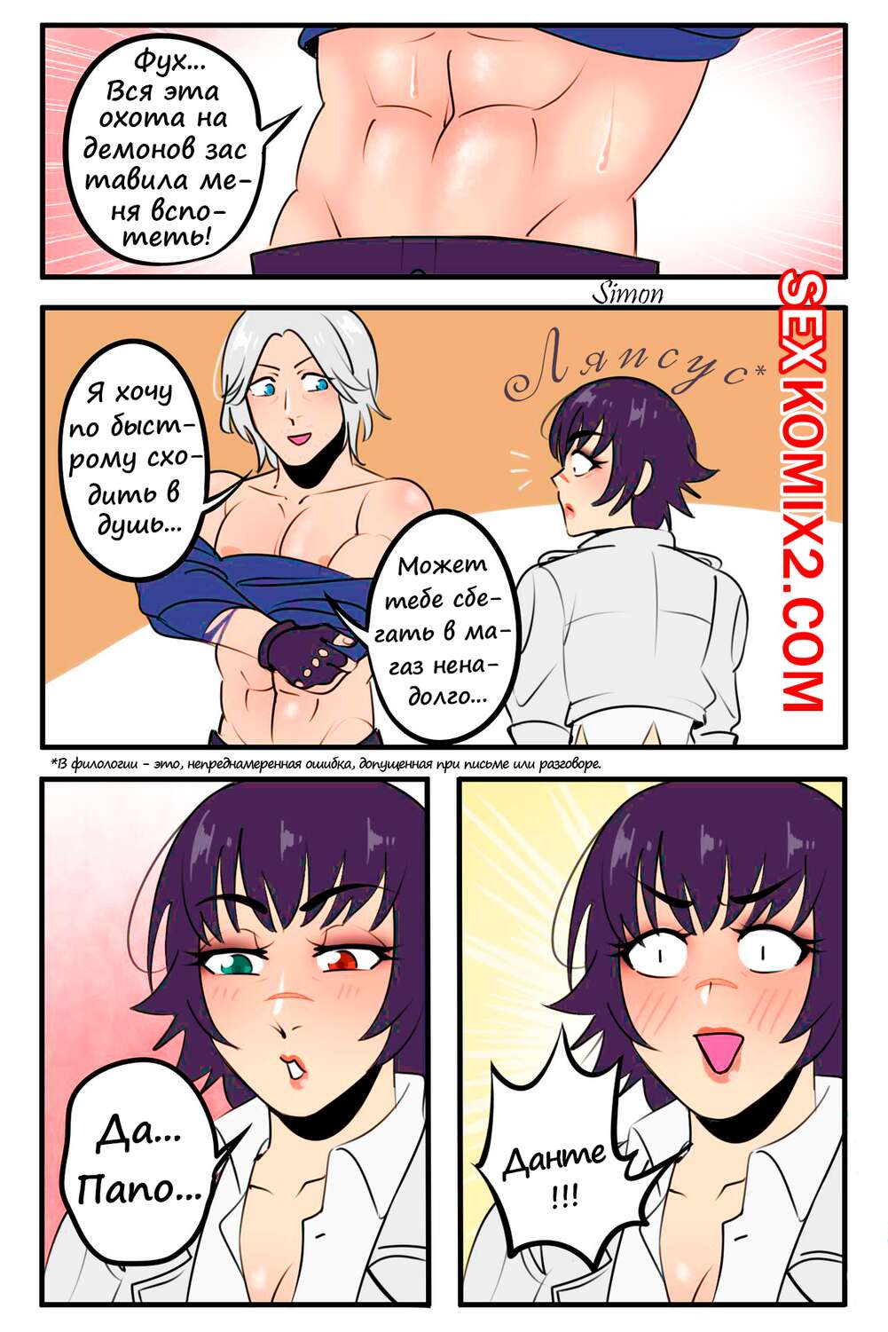 Порно комикс Ляпсус. Lapsus. Devil May Cry Сисястая красотка брюнетка очень возбудилась рядом со своим дружком и стала его умолять ее выебать. Парень был только рад, поэтому он хорошенько выебал сучку и кончил в нее.