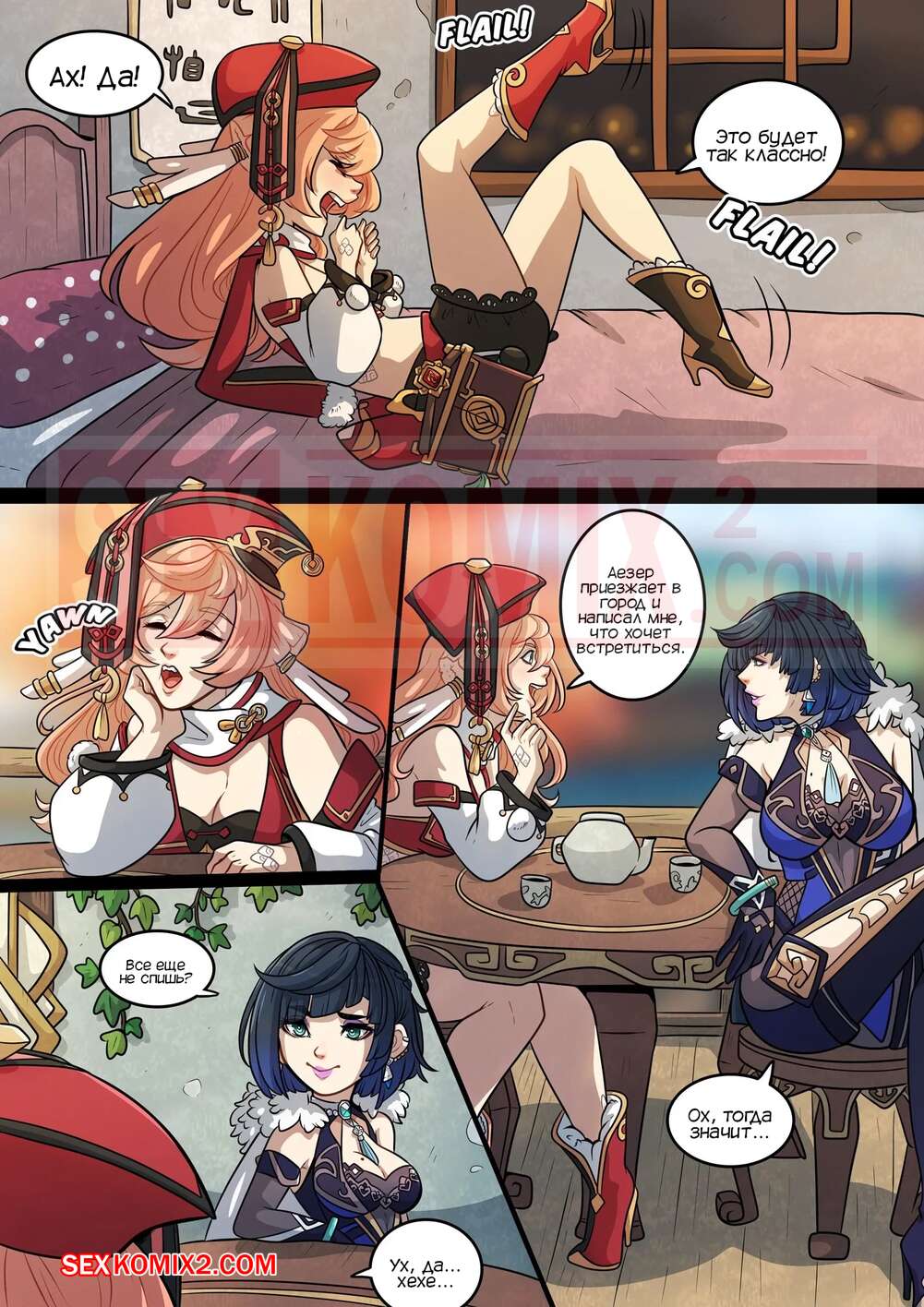 Порно комикс Genshin Impact. Элементарное желание. Elemental Desire. Kinkymation Горячая сисястая брюнетка встретилась со своим дружком после долгой разлуки. Они хорошо провели время, после чего отправились домой к девушке, чтобы хорошенько поебаться.