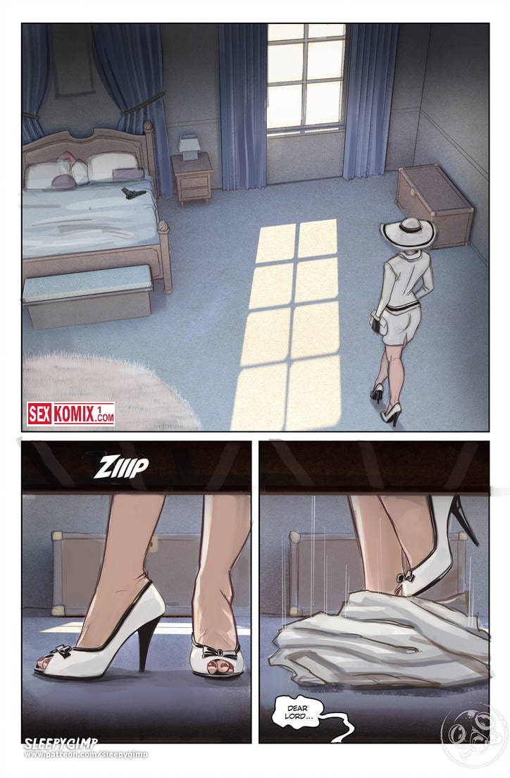 Порно комикс Леди. Английский. Работник отеля увидел на кровати трусики зрелой женщины и начал их нюхать. Но она это увидела, милфа решила наказать проказника. Она заставила его лечь на пол и села ему на лицо своей киской, чтобы он смог вкусить запах её вагины.