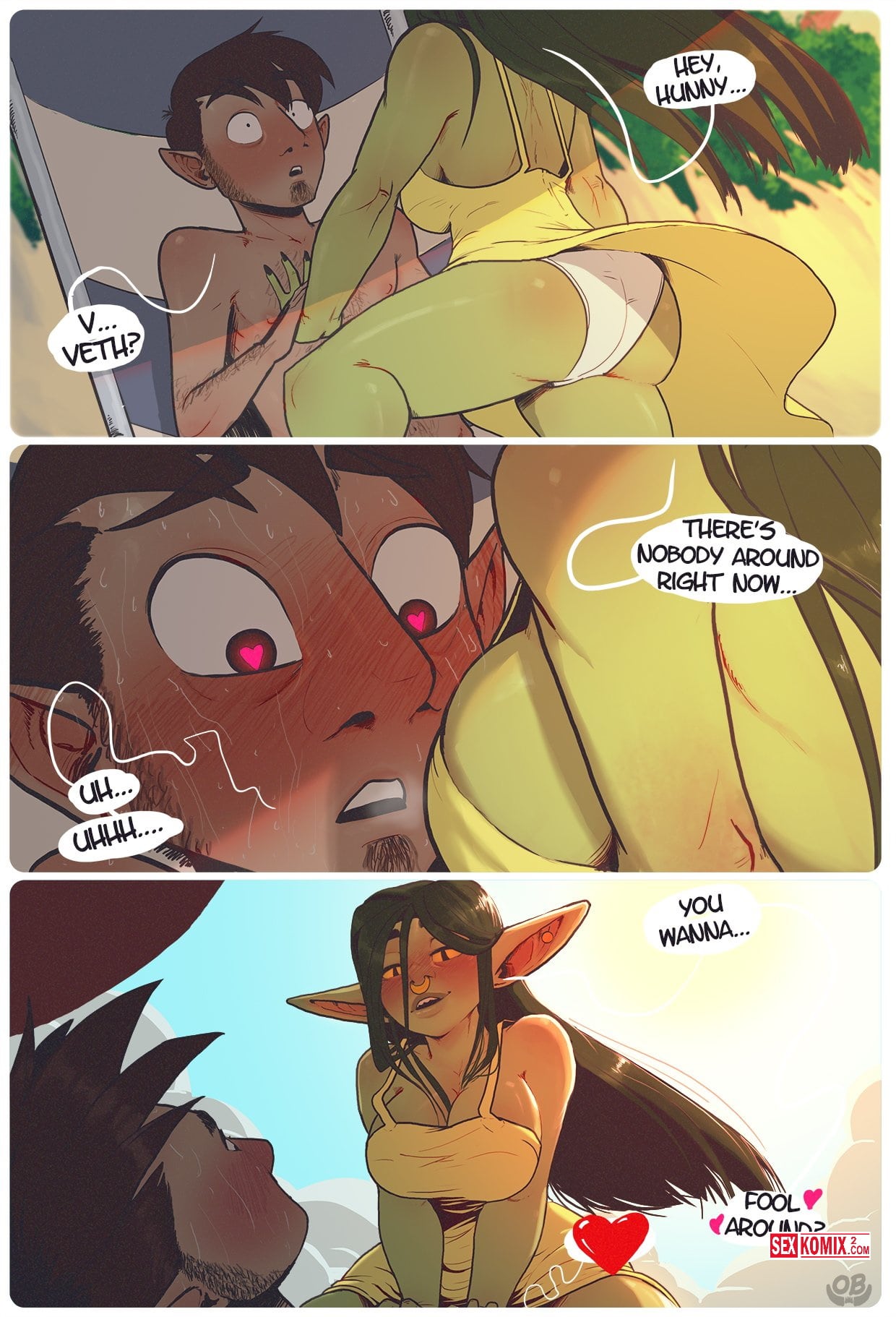 Обновлен. Порно комиксы Пляжный день в Ксорнаксе. Английский. Зеленокожая девушка, очень сексуальная в летнем платье, ее приятель не выдержал волнения, и его член стал каменным. Красавица воспользовалась этим и занялась с ним сексом на пляже.