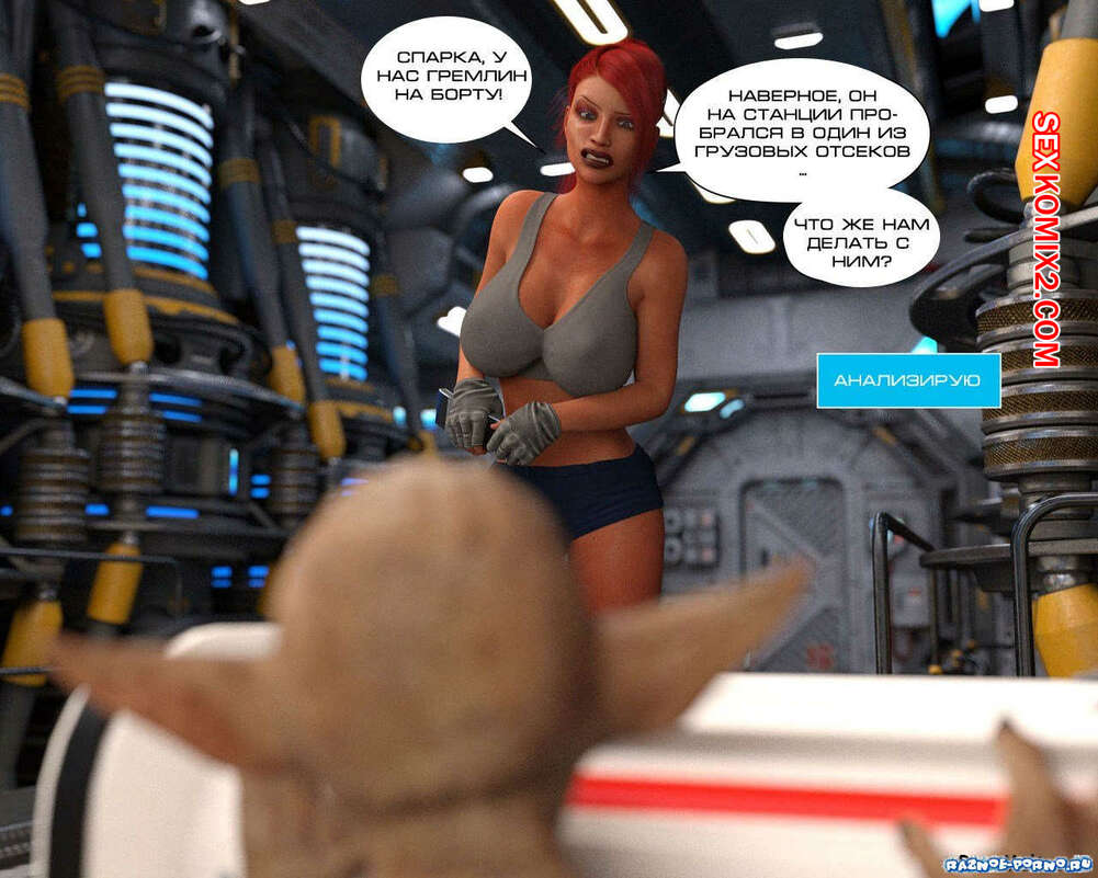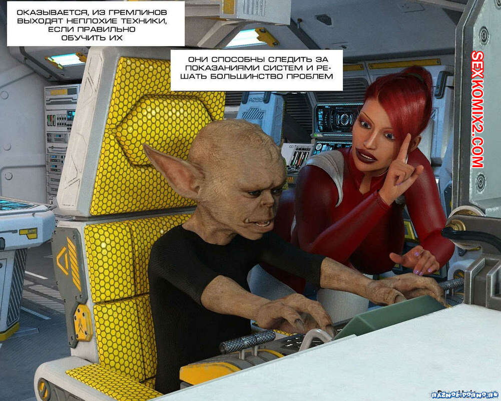 Порно комикс Ненасытный маленький пришелец Горячая сиястая брюнетка нашла монстра с огромный хуем на космическом корабле. Она встала перед ним на колени и стала сосать его большой хуй, после чего дала ему себя хорошенько выебать.