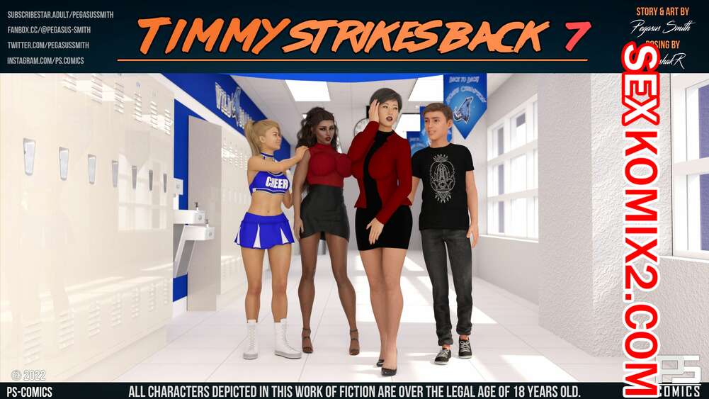 Порно комикс Тимми наносит ответный удар. Часть 8. Timmy Strikes Back. Pegasus Smith Горячая сисястая брюнетка встретила парня в школе и хочет с ним повеселиться. Она повела его в пустой класс, где встала перед ним на колени и отсосала его большой хуй, получив сперму парня.