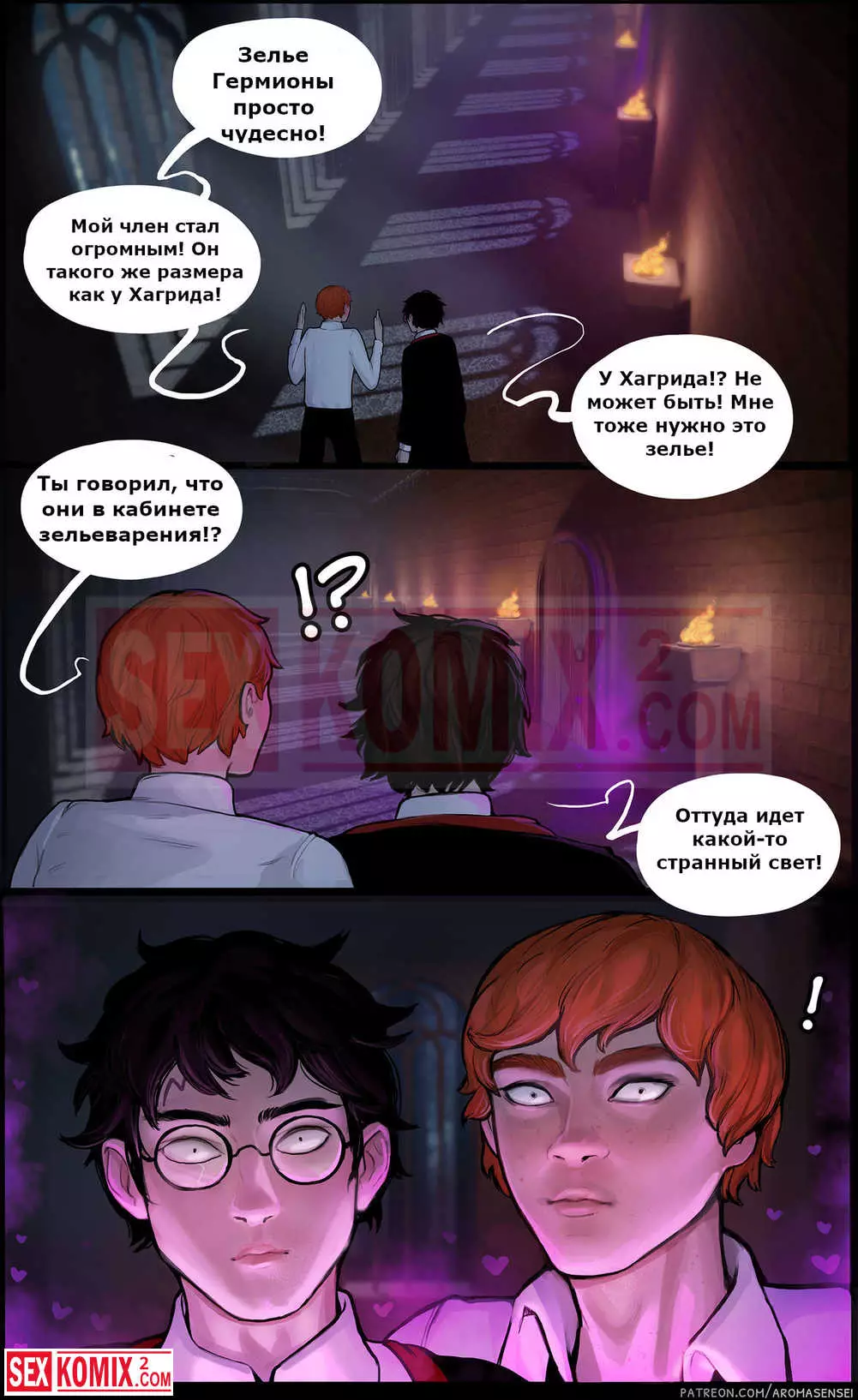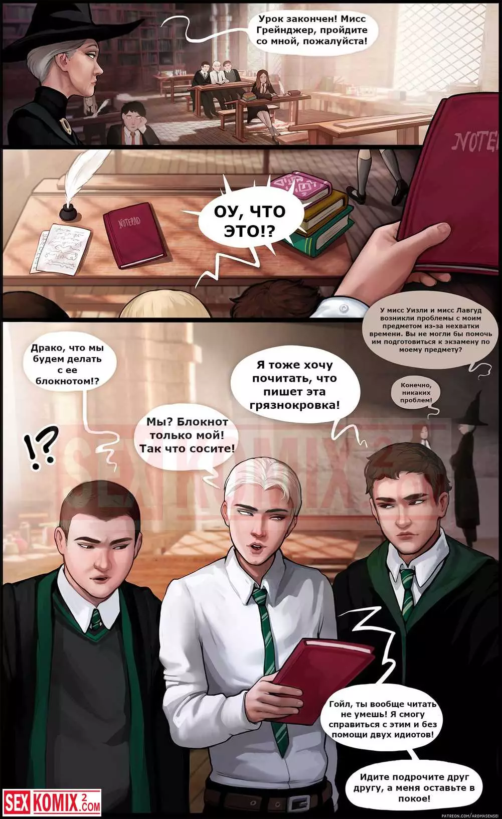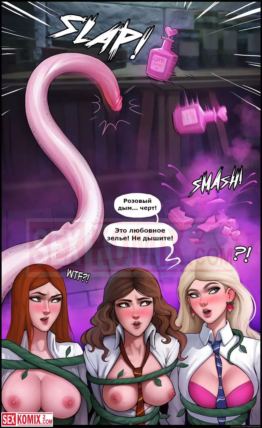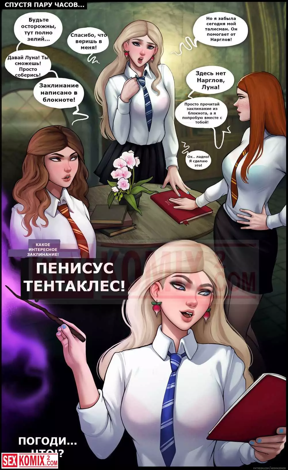 Порно комикс Дополнительный урок. Гермиона. Подружки из института магии решили пошалить и соблазнить своих знакомых парней. Они позвали их посмотреть на новые заклинания, которые те выучили.