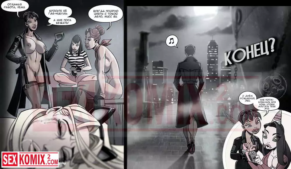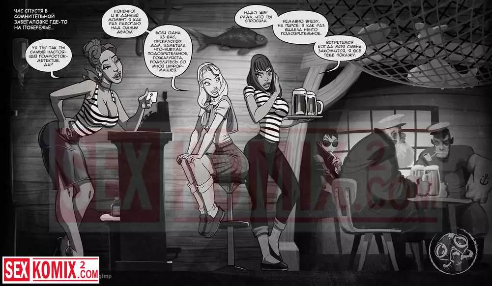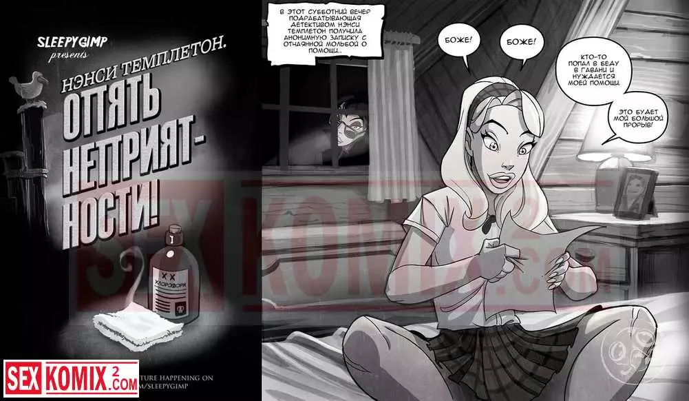 Порно комикс Нэнси Темплетон. Опять неприятности. Девушка расследовала дело на пристани. Она ходила одна поздно ночью пока там никого не было, но красотка попала в ловушку к двум лесбиянкам.