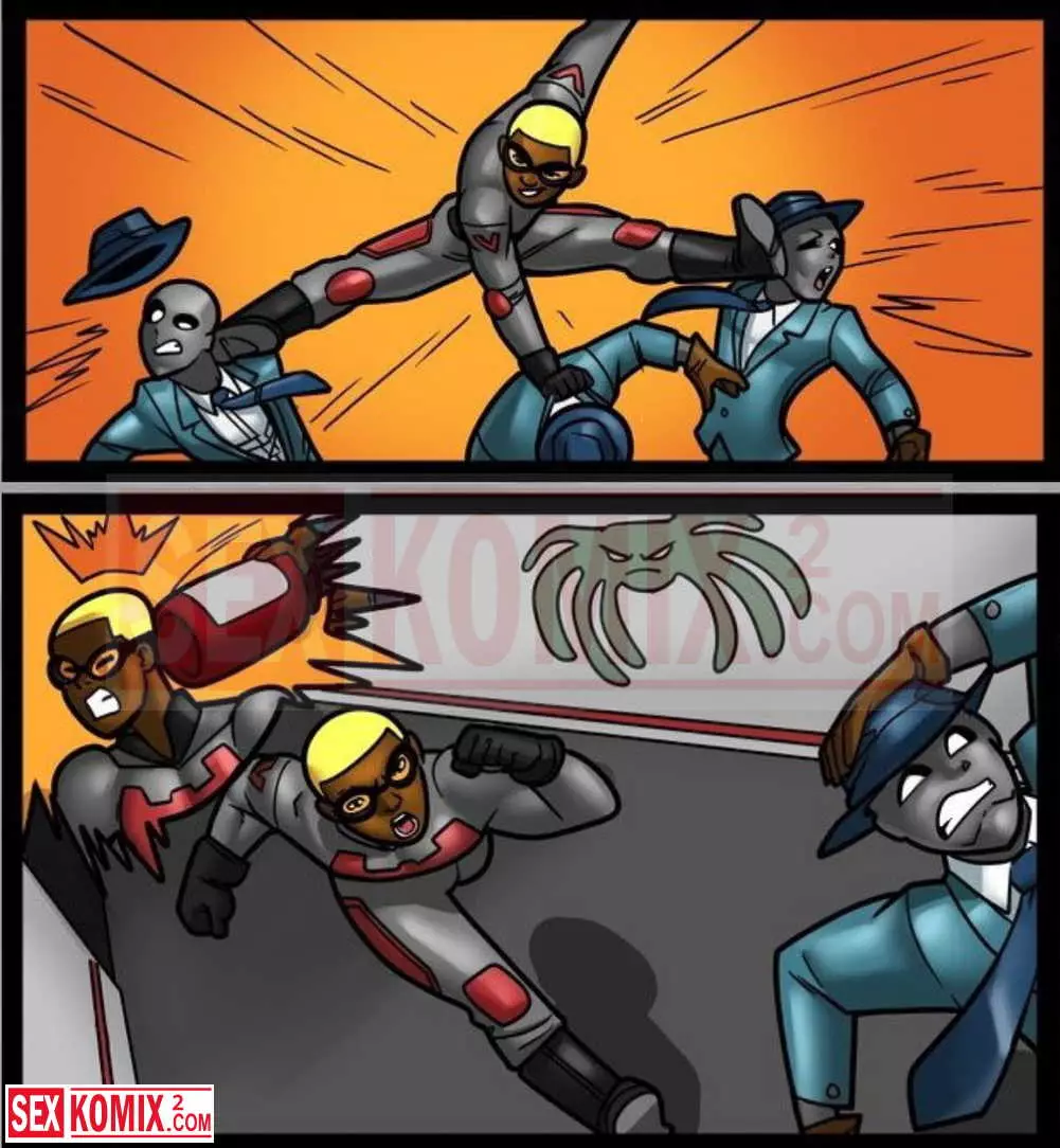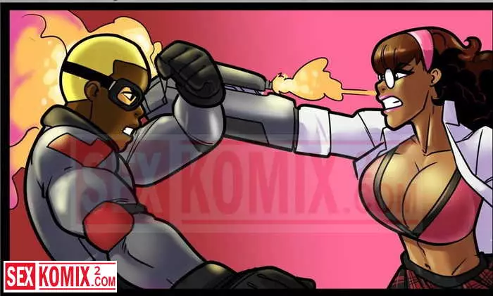 Порно комикс Сказки героя. Молот. Чернокожий супергерой на очередном задании встречает симпатичную девушку и она его соблазнят. После горячего секса девушка уходит, а парню проходится объясняться перед начальством.