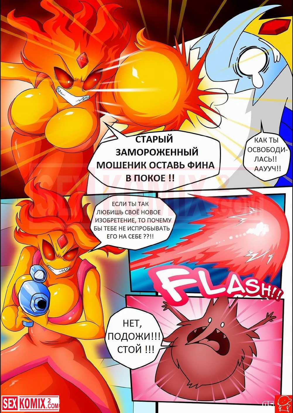 Порно комикс Время приключений Ледниковый период. Злодей создал пушку которая превращает всех в сексуальных девушек с большими сиськами.