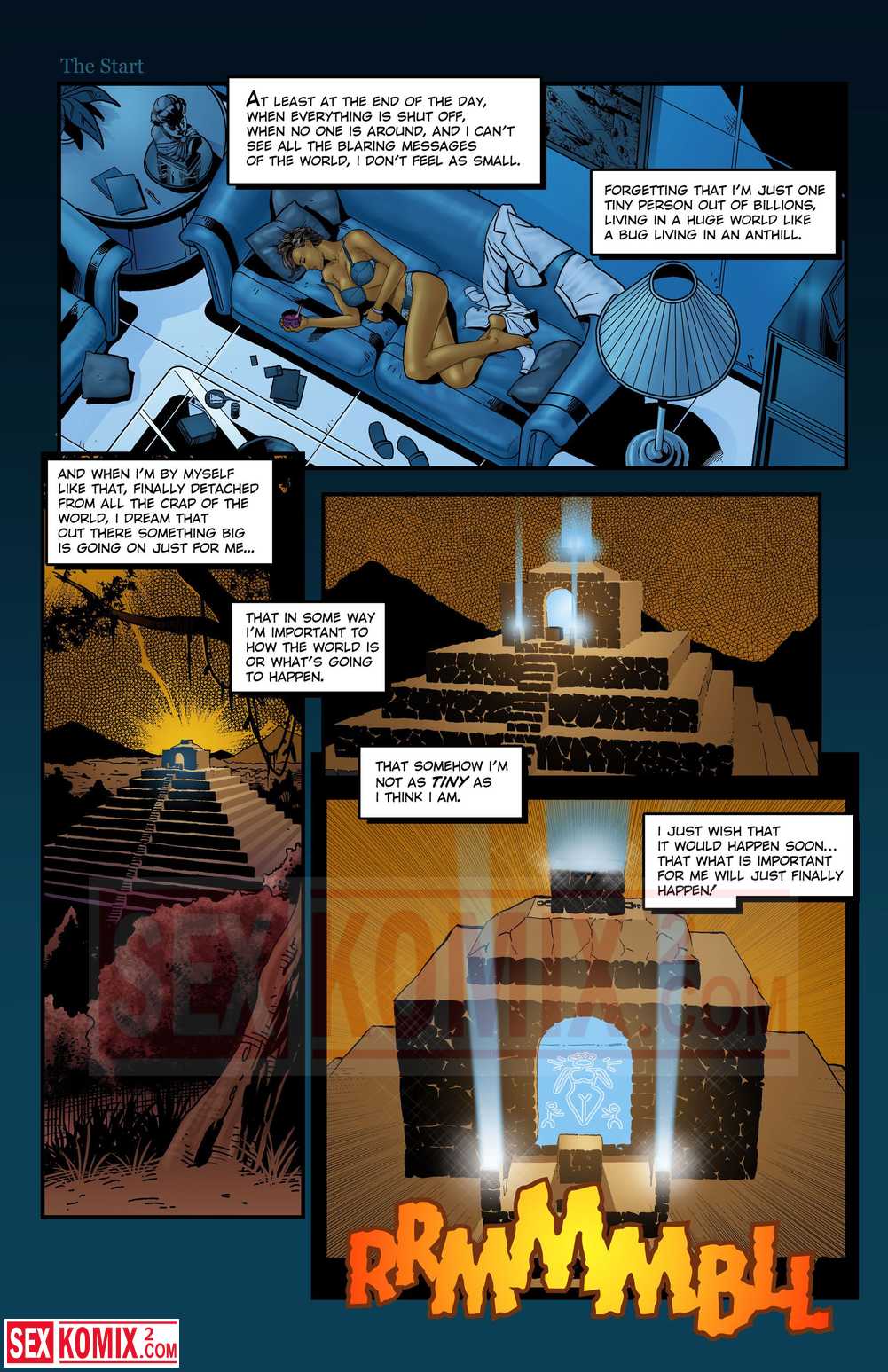 Порно комикс Богиня. Английский. Сексуальная брюнетка уснула в своей спальне. А проснулась возле пирамид, она стала богиней и люди начали поклоняться ей.