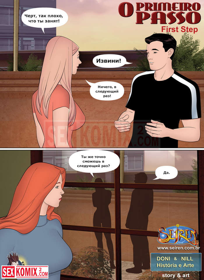 Порно комикс Первый шаг. Женщина увидела своего племянника с девушкой и позже решила поговорить об этом. Она предложила свою помощь в изучении женского тела перед следующим свиданием.