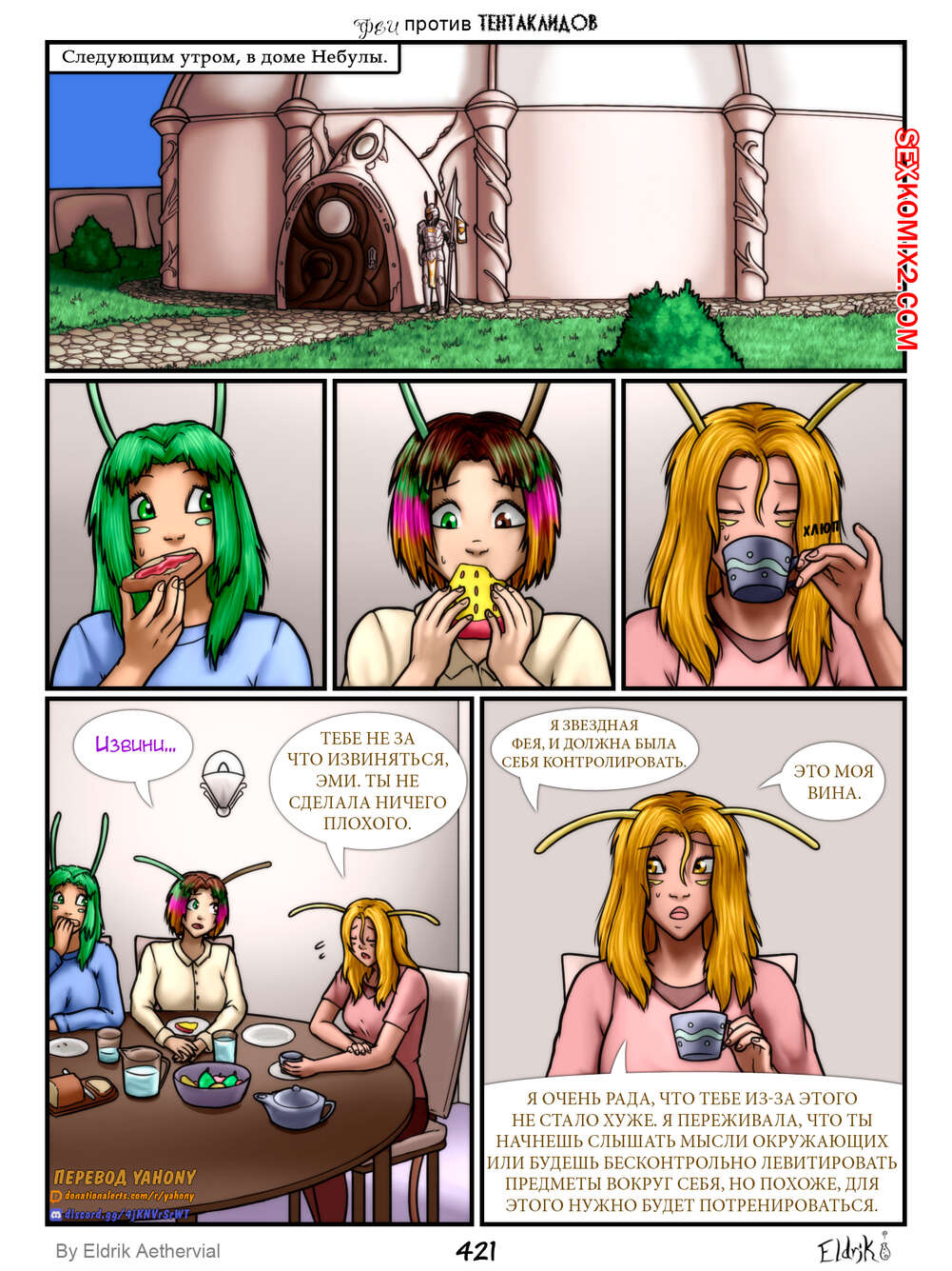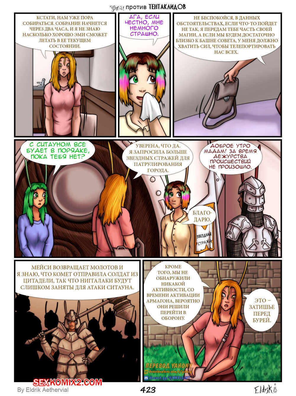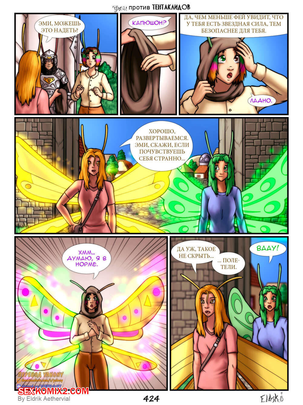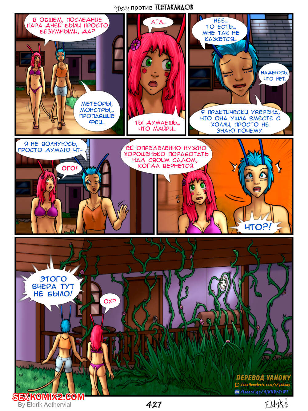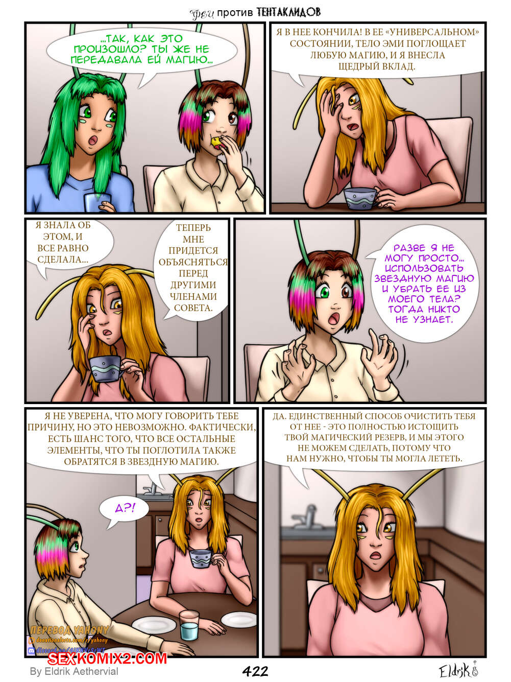 Порно комикс Феи против Тентаклидов. Часть 7. Fairies vs Tentacles. Eldrik Aethervial На горячих сексуальных красоток фей нападают огромные щупальцы. Они раздели девушек и прижали их к стене, после чего хорошенько выебали их во все дырочки, доставив красоткам огромное удовольствие.