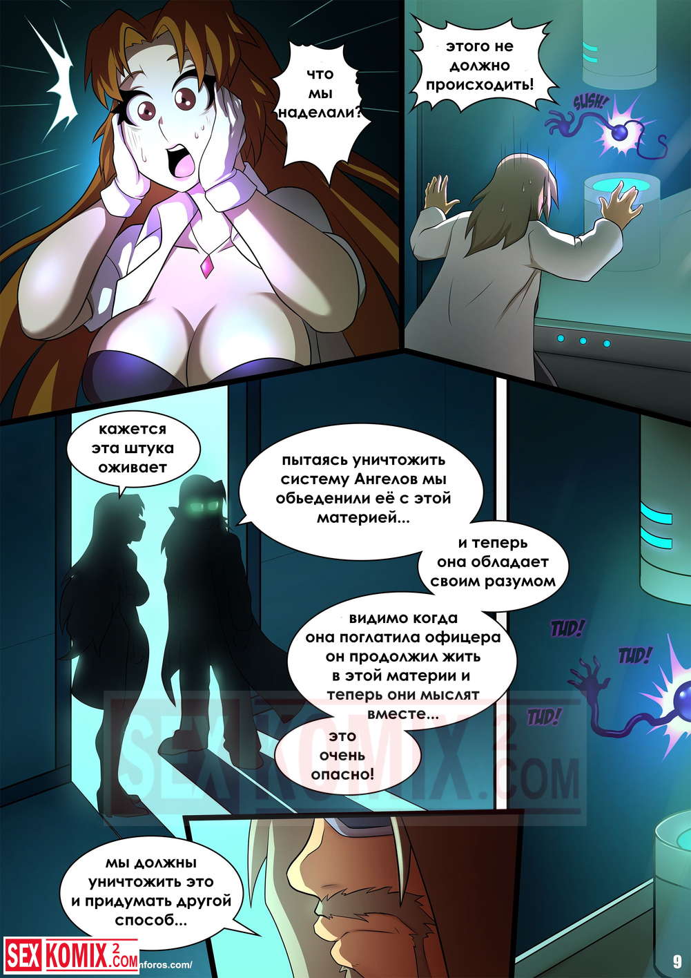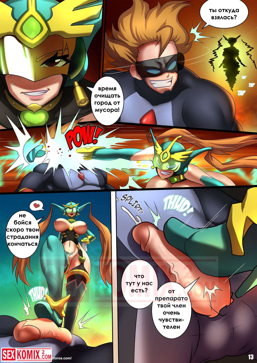 Порно комикс Темная мать. Лезвие ангела. Фантастический комикс про супер героев, на город напал озабоченны злодей и начал трахать всех вокруг. Эта работа для сальной женщины.