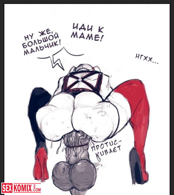 Порно комикс Харли Квинн. Супершлюха. Часть 3. Продолжение анальной баталии развратной блондинки, она не может угомониться и просит своего парня вставить ей член как можно глубже.