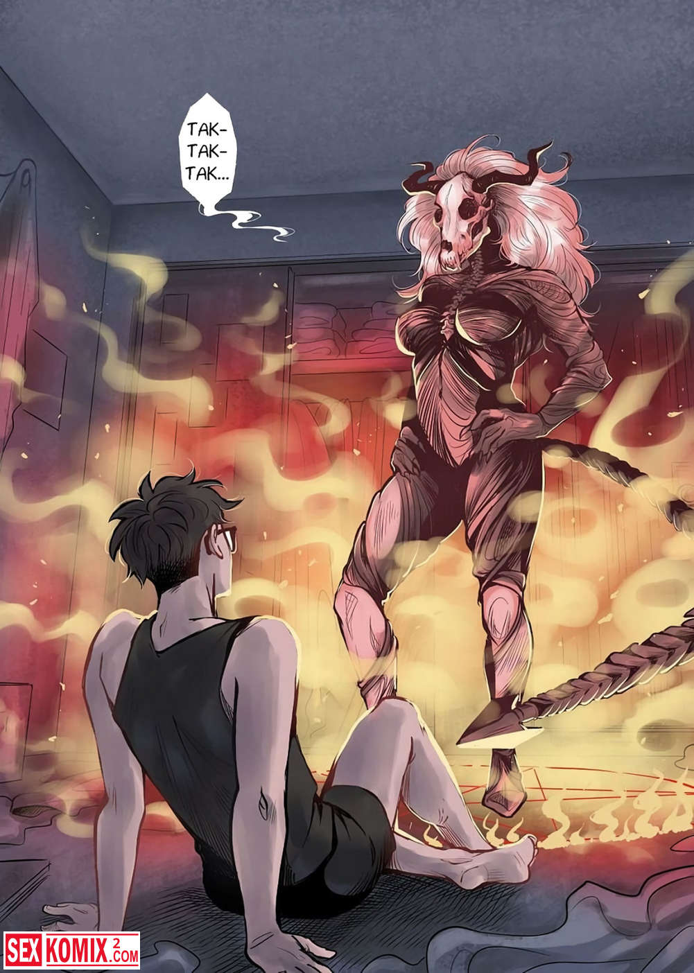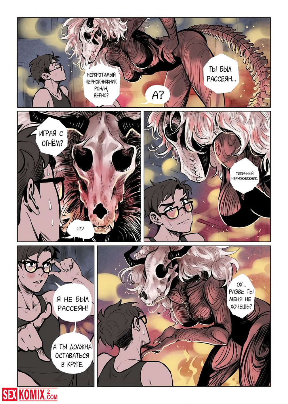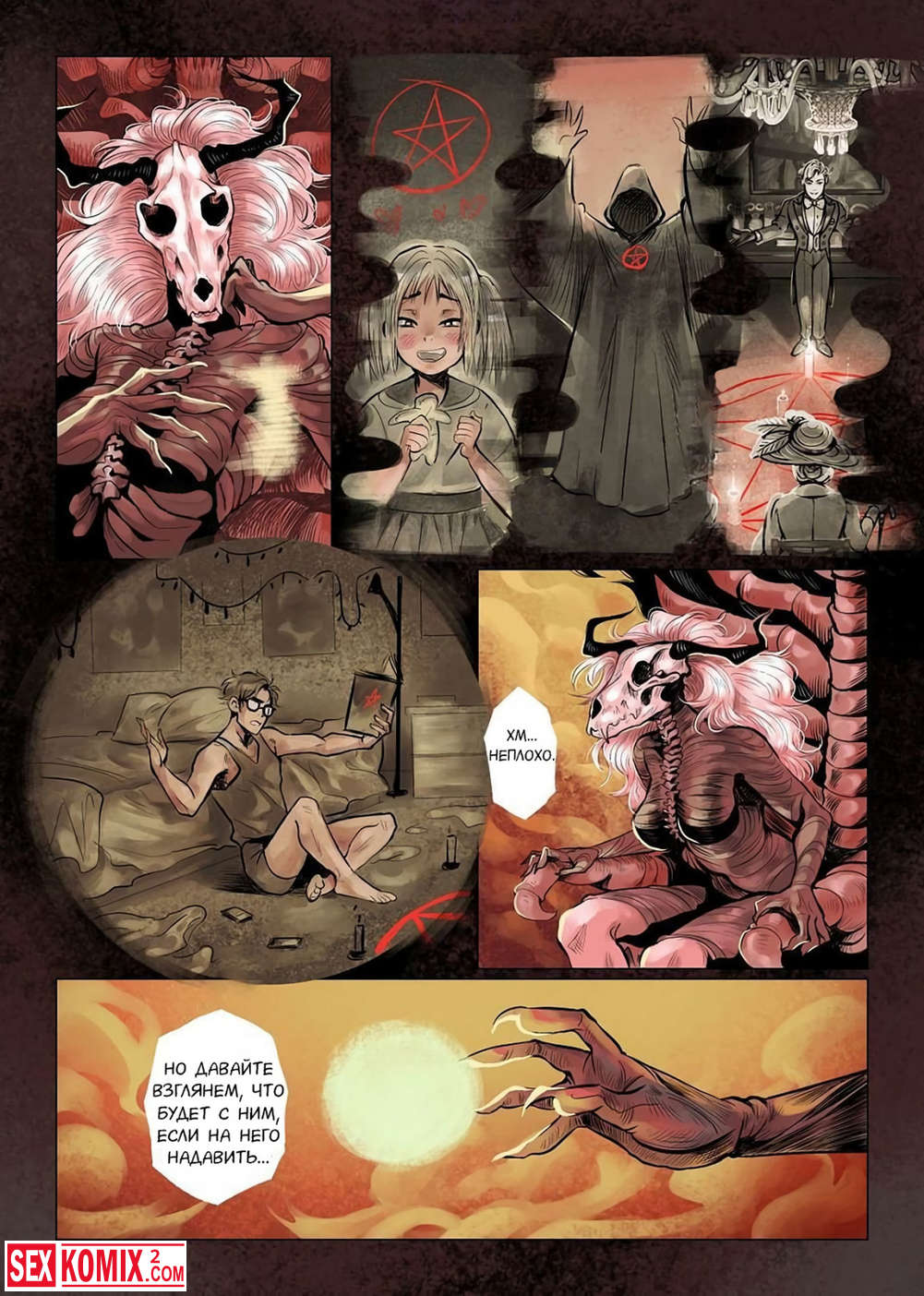 Порно комикс Загнанный. Скучно в аду, демоническая красотка обратила свой взор на чернокнижника, он пытался призвать кого-то из ада. Но сможет ли он справиться с тем кого зовет?