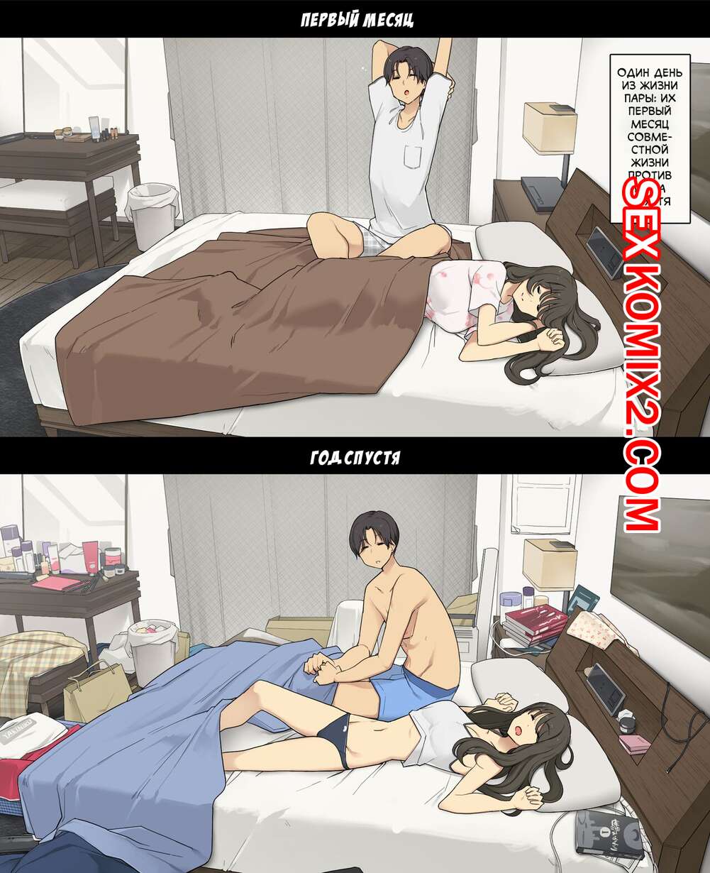 Порно комикс Первый месяц совместной жизни пары против года спустя. Wakamatsu Парень с девушкой стали жить вместе. Первое время они еще старались заниматься другими делами, но спустя год они забили на все и стали постоянно трахаться.