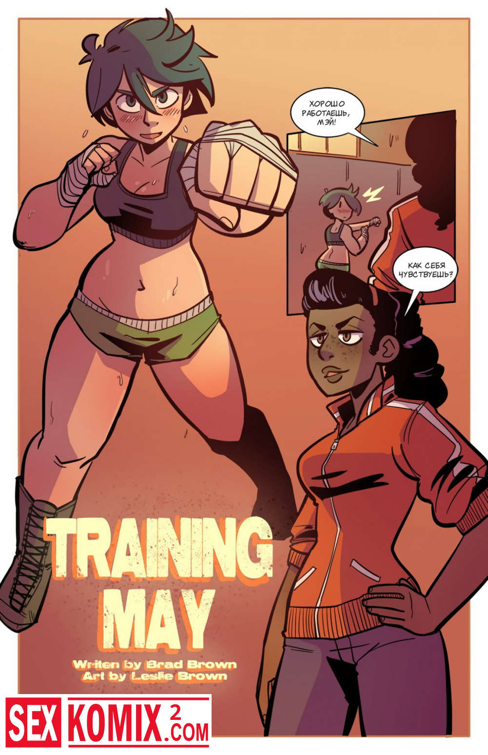 Порно комикс Тренировка Мэй. Девушка готовится к боевым соревнованиям, её тренер решила что пришло время для настоящего испытания и устроила её поединок один на один.
