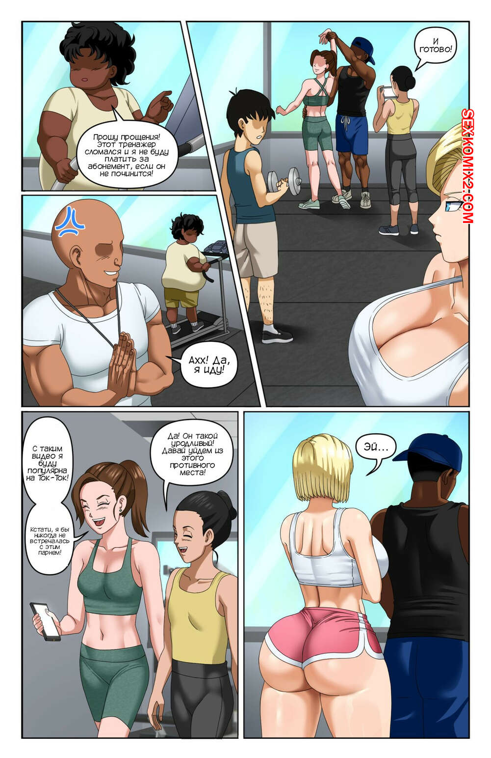 Порно комикс Dragon Ball. Андроить 18 НТР. Часть 3. Android 18 NTR Zero. Pink Pawg Сексуальная блондинка отправилась в тренажерный зал и положила глаз на темнокожего парня. Красотка разделась перед ним и стала сосать его большой хуй, после чего дала ему себя выебать.