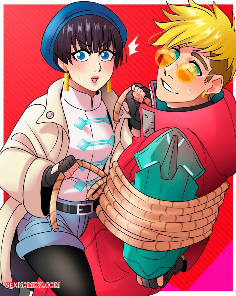 Порно комикс Trigun. Мерил Страйф и Вэш. Dangerous Bride Сексуальная брюнетка была очень возбуждена и хотела трахаться. Она связала на стуле парня, после чего оседлала его большой хуй и дала ему себя выебать, заполнив ее пизденку спермой.