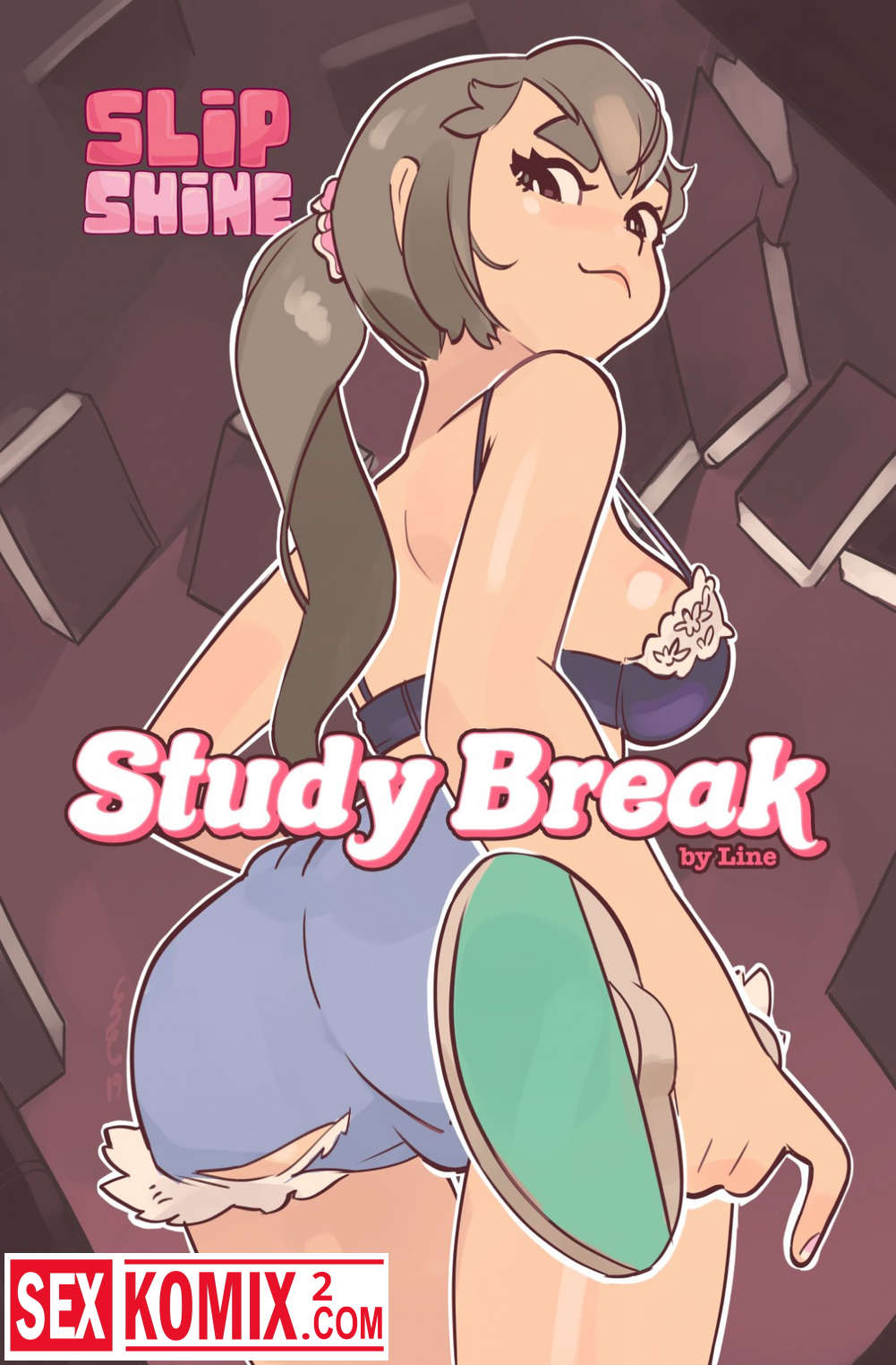 Порно комикс Перерыв в учёбе. Часть 1. Красотка сидела за учебниками, но пришли её подружки отвлекли её от учебы своими развратными играми.