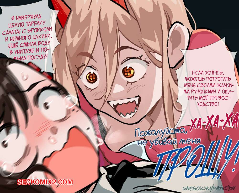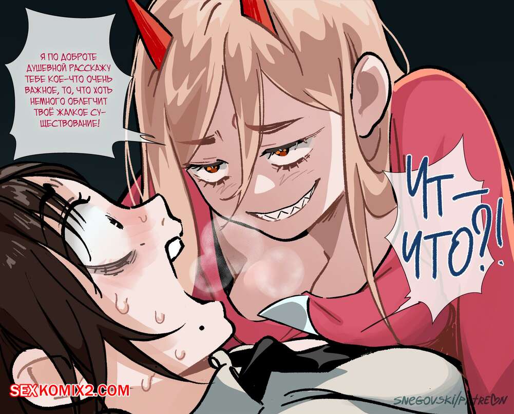 Порно комикс Chainsaw Man. Павер слишком возбуждена. snegovski Сексуальная красотка Павер была очень возбуждена и решила повеселиться со своей подругой. Она раздела ее и стала ласкать ее пизденку, после чего они занялись страстной лесбийской еблей.