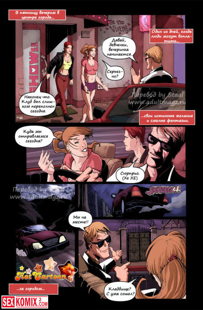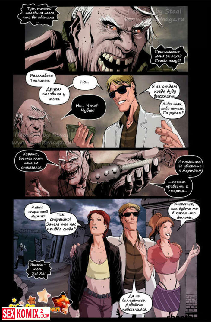 Порно комикс Секс на кладбище. Парень с двумя девушками решили пощекотать свои нервы и занялись сексом на ночном кладбище.