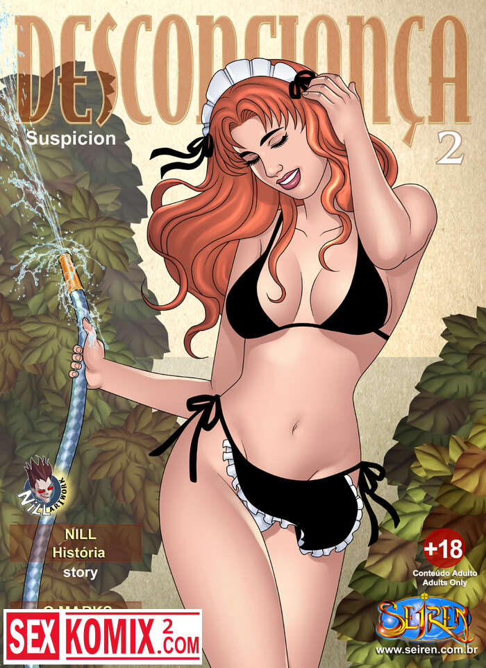 Порно комикс Подозрение. Часть 2. Английский. Муж продолжает развлекаться с служанкой, но он не в курсе что жена установила в доме скрытые камеры.