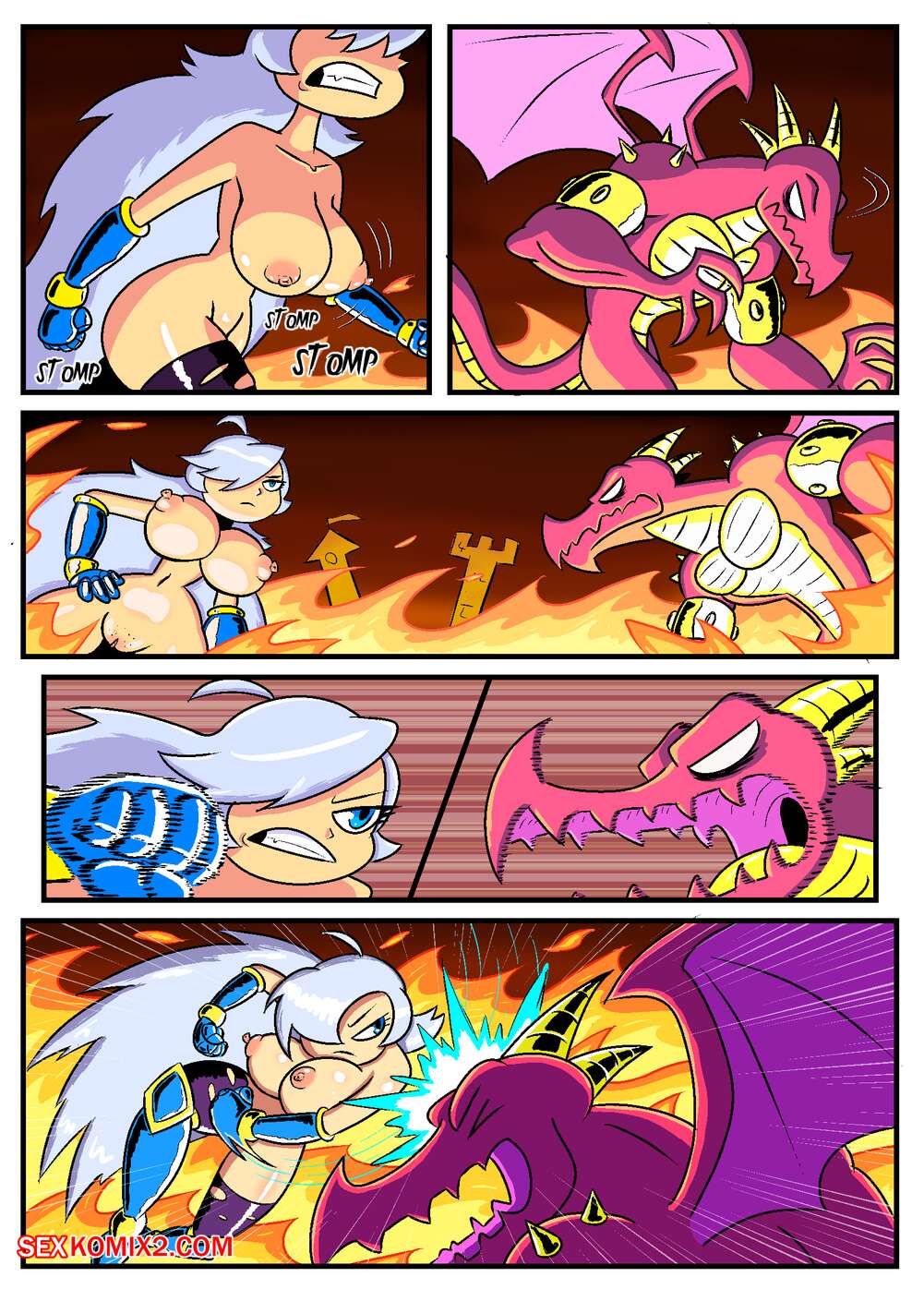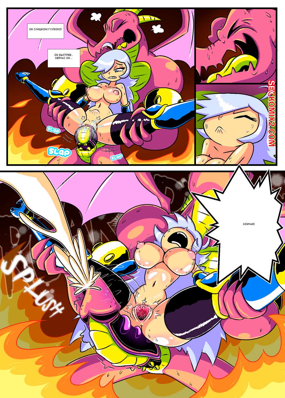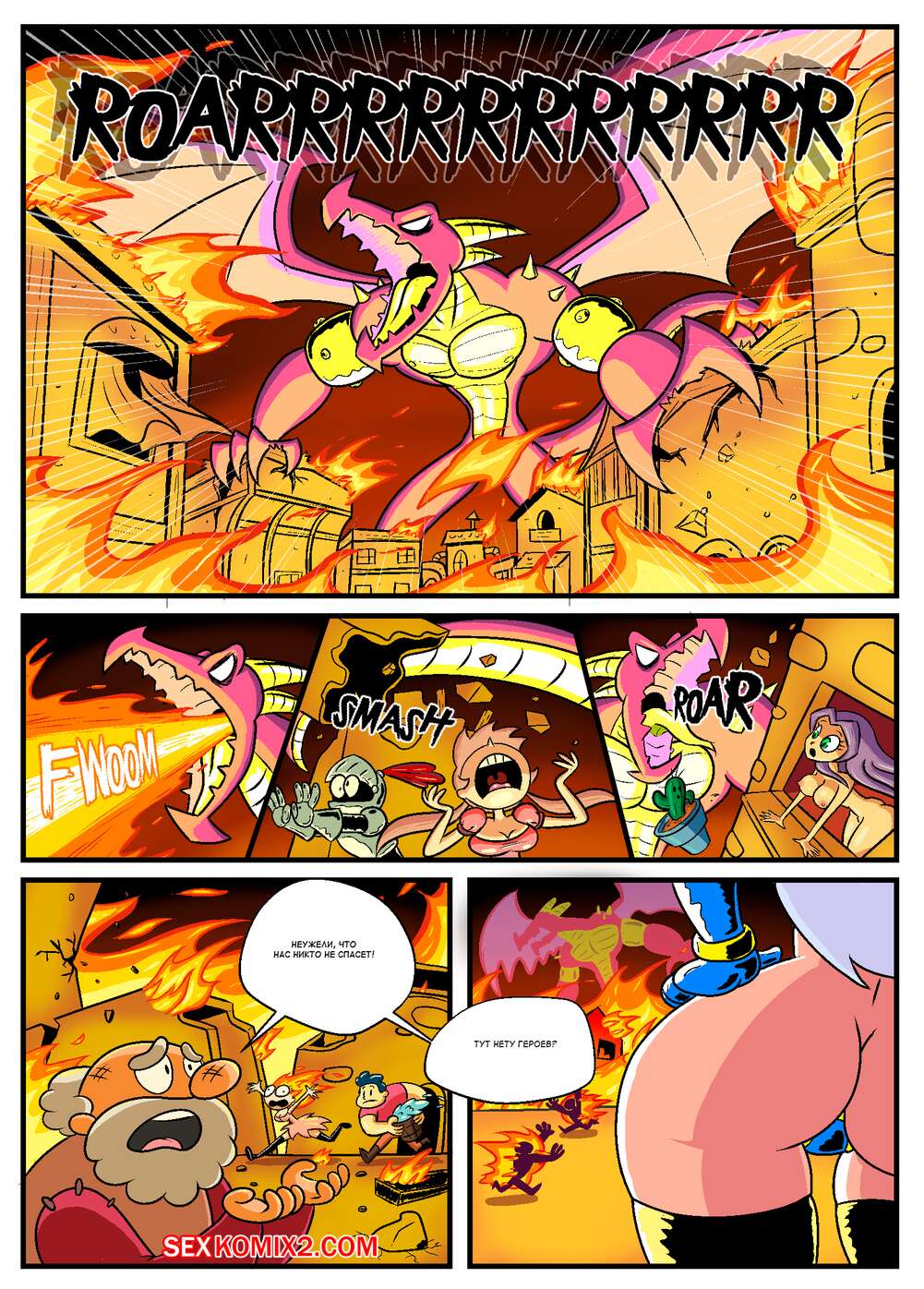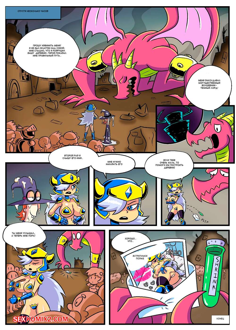 Порно комикс Сисястый квест. Часть 2. Booby Quest. DrShanks24 На деревню напал дракон и сексуальная блондинка отправилась бороться с ним. Но чудовище схватило девушку и дало ей отсосать свой большой хуй, после чего он выебал ее и заполнил своей спермой.