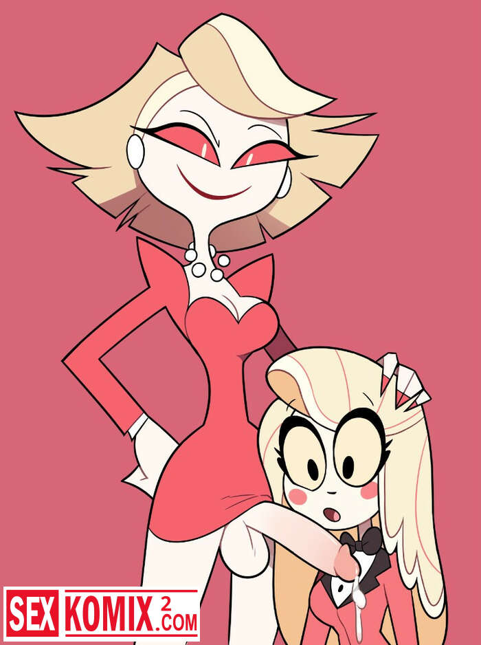 Порно комикс Отель Хазбин. Транс шлюха из известного мультфильма даёт на клык дочери дьявола.