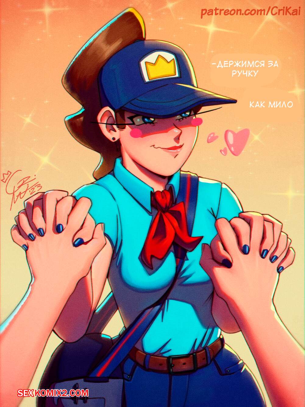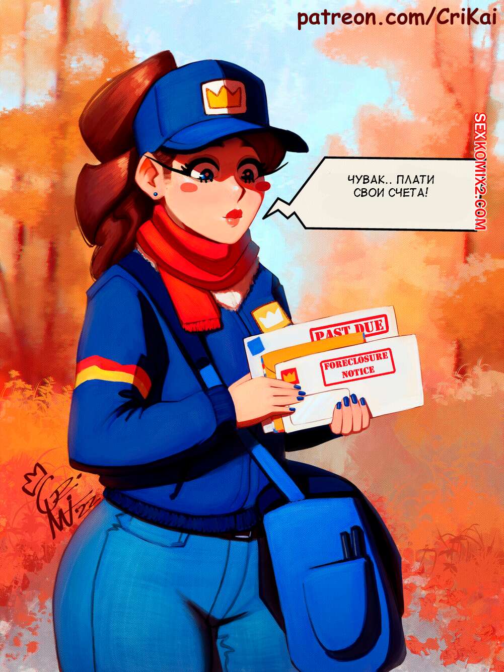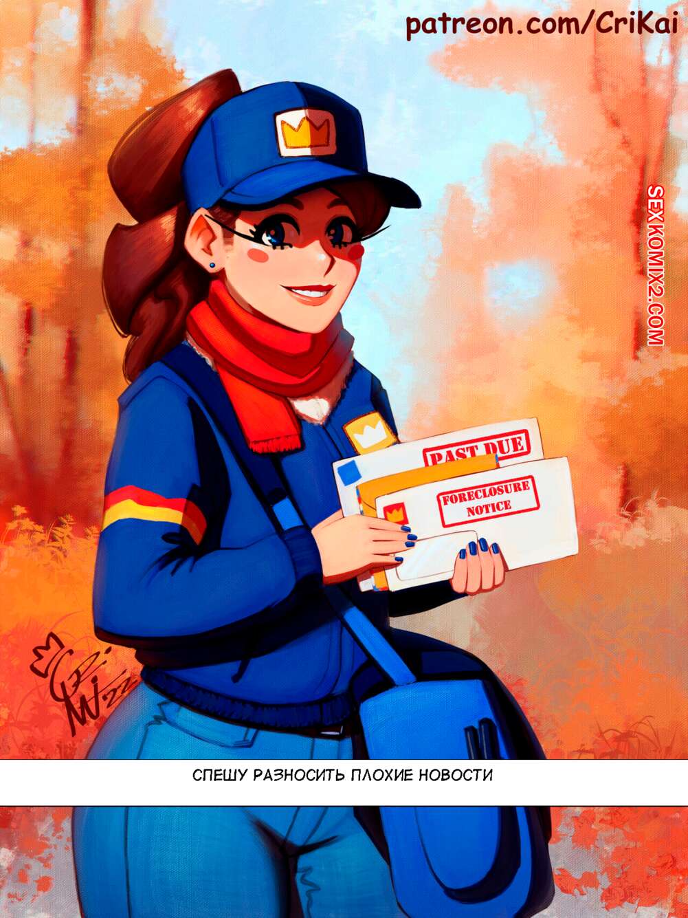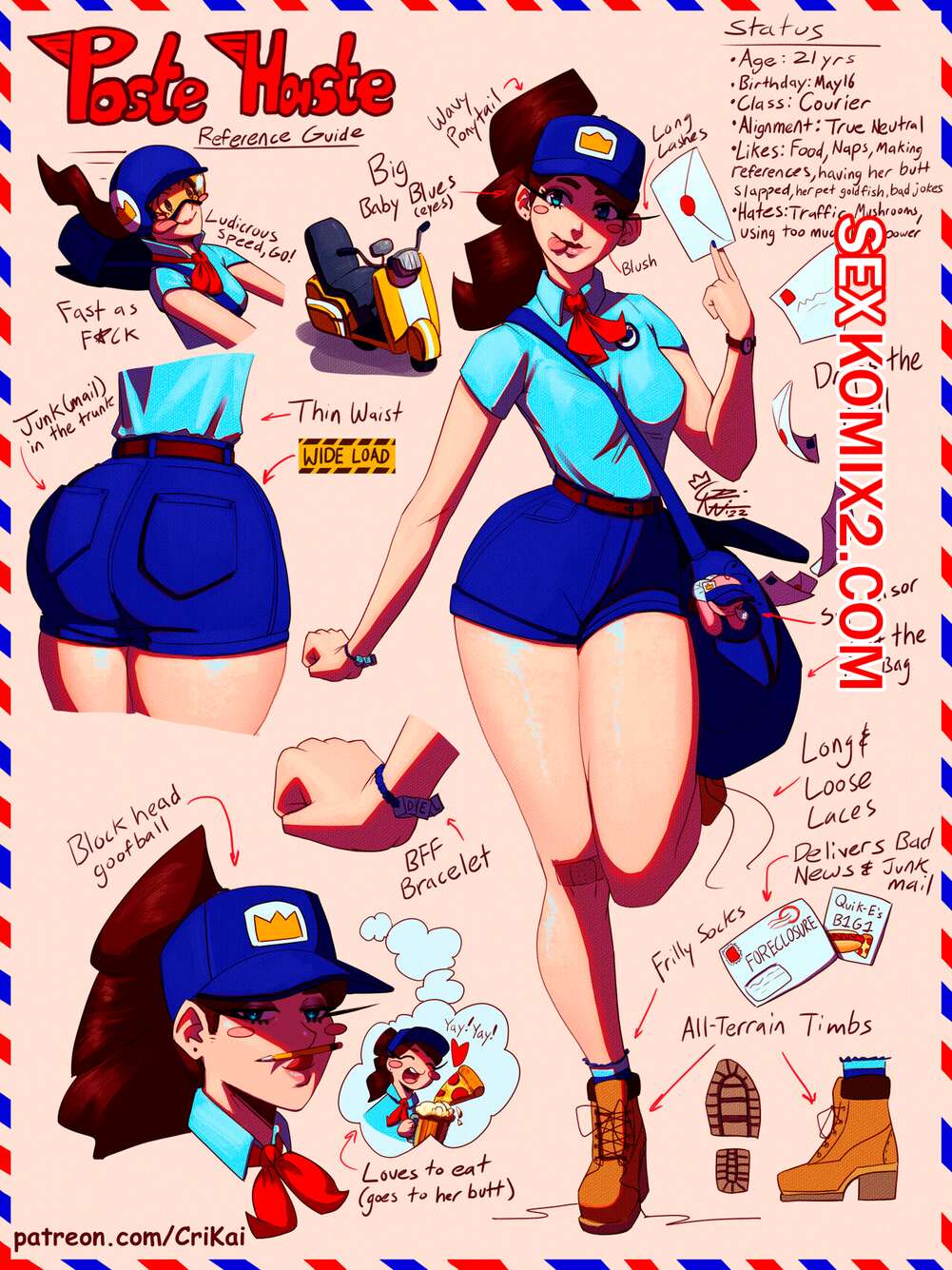Порно комикс Почтовая спешка. Poste Haste. CriKai. Подборка картинок с горячей сексуальной брюнеткой почтальоншой. Красотка примеряет различные наряды, демонстрируя свое шикарное тело и лаская свою пизденку с помощью игрушек.