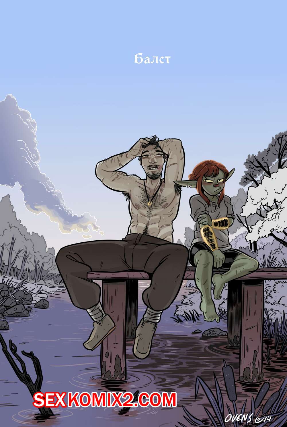 Порно комикс Балст. Часть 4. Обнаженная и подевичьи прекрасная. Ovens Парень со своей сексуальной подругой гоблиншей были очень возбуждены и решили повеселиться в лесу. Они стали страстно целоваться, после чего парень отлизал пизденку девушки.