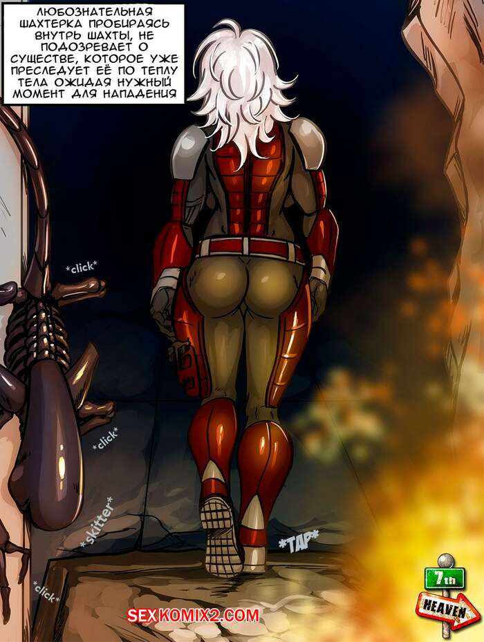 Порно комикс Чужой. Alien. 7ht heaven Во время своей миссии сексуальная блондинка наткнулась на чужого. Монстр напал на девушку и трахнул ее пизденку, поработив дело сексуальной девушки.