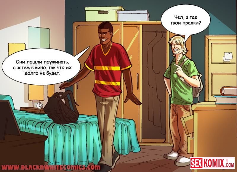 Порно комикс «Дилемма онлайн знакомств». В этом эротическом комиксе вы увидите двух друзей, один из них познакомился с девушкой через интернет и хочет её трахнуть. И подговорил второго снять все на видео камеру, чтобы потом выложить в сеть. Но оказалось, что эта сексуальная блондинка мать парня с камерой…