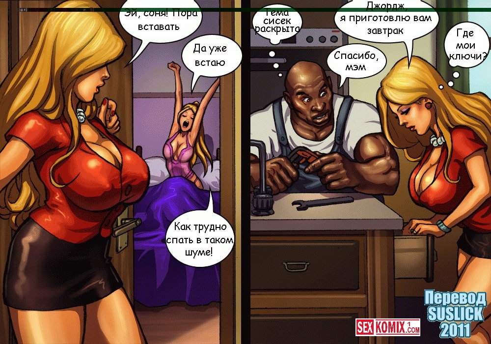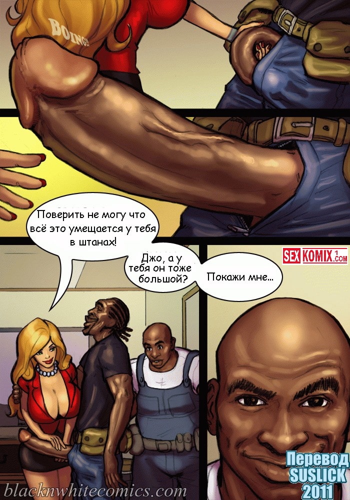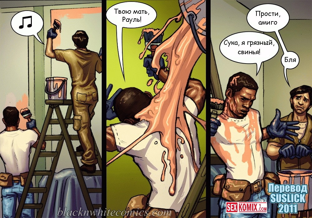 Читать Порно комикс «Большой ремонт». Этот эро комикс о развратных женщине и девушке, которые затеяли ремонт у себя дома и позвали чернокожих рабочих. А так как дамочки уже соскучились по хорошей порке, они то и делали, что заигрывали с парнями. Но ребята оказались не из стеснительных и воспользовались дамами на полную катушку.