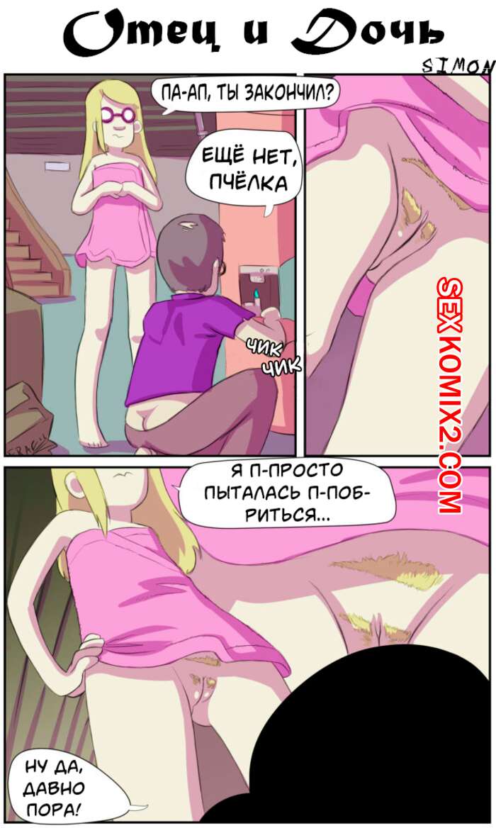 Порно комикс Отец и дочь. Dad Daughter. Deflowered. Yellowgerbil. Озабоченная дочь пришла к своему отцу без трусиков, чтобы его соблазнить. Мужчина увидев молодую киску не смог сдержаться и дал девушке то чего она хотела.