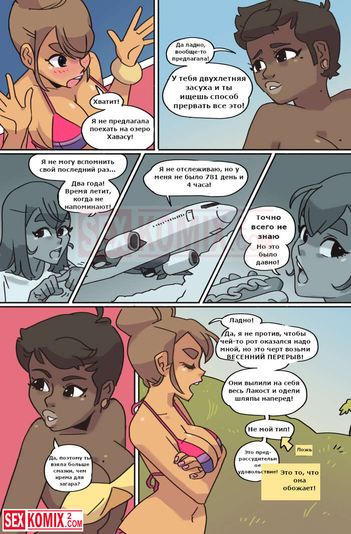 Порно комикс Весенние каникулы. Showcase. Девушка студентки отлично проводят время на яхте жарким летним днем. Слушают музыку и купаются нагишом.