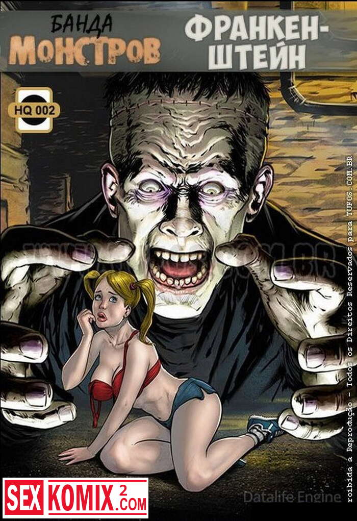 Порно комикс Банда монстров. Часть 2. Франкенштейн. Монстр созданный ученым убил своего создателя и вышел на улицу, там он встретил блондинку с большими сиськами. Она сделал ему минет и его сердце ожило.