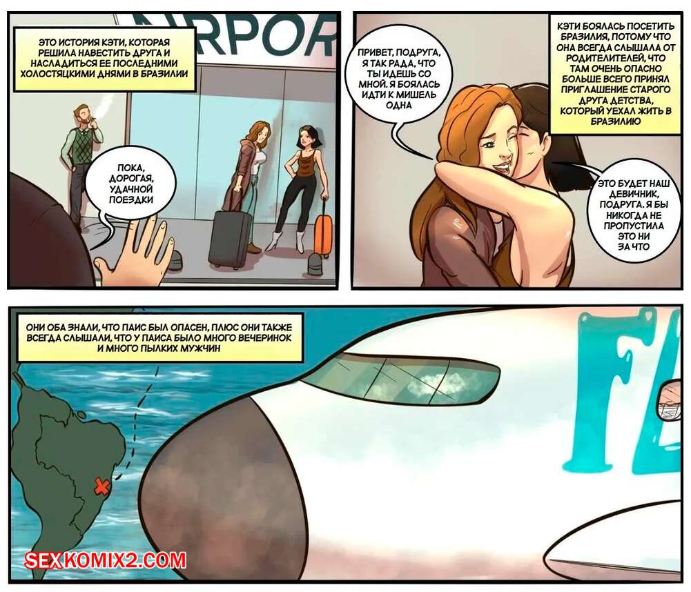 Порно комикс Кэти с подругами открываются для себя Рио. Katy e Amigas Conhecendo o Rio Горячие подруги собрались отдохнуть вместе и отправились в Рио, чтобы расслабиться. Сексуальные девушки привлекают на пляже внимание темнокожих парней, которые ебут девушек во все дырочки.