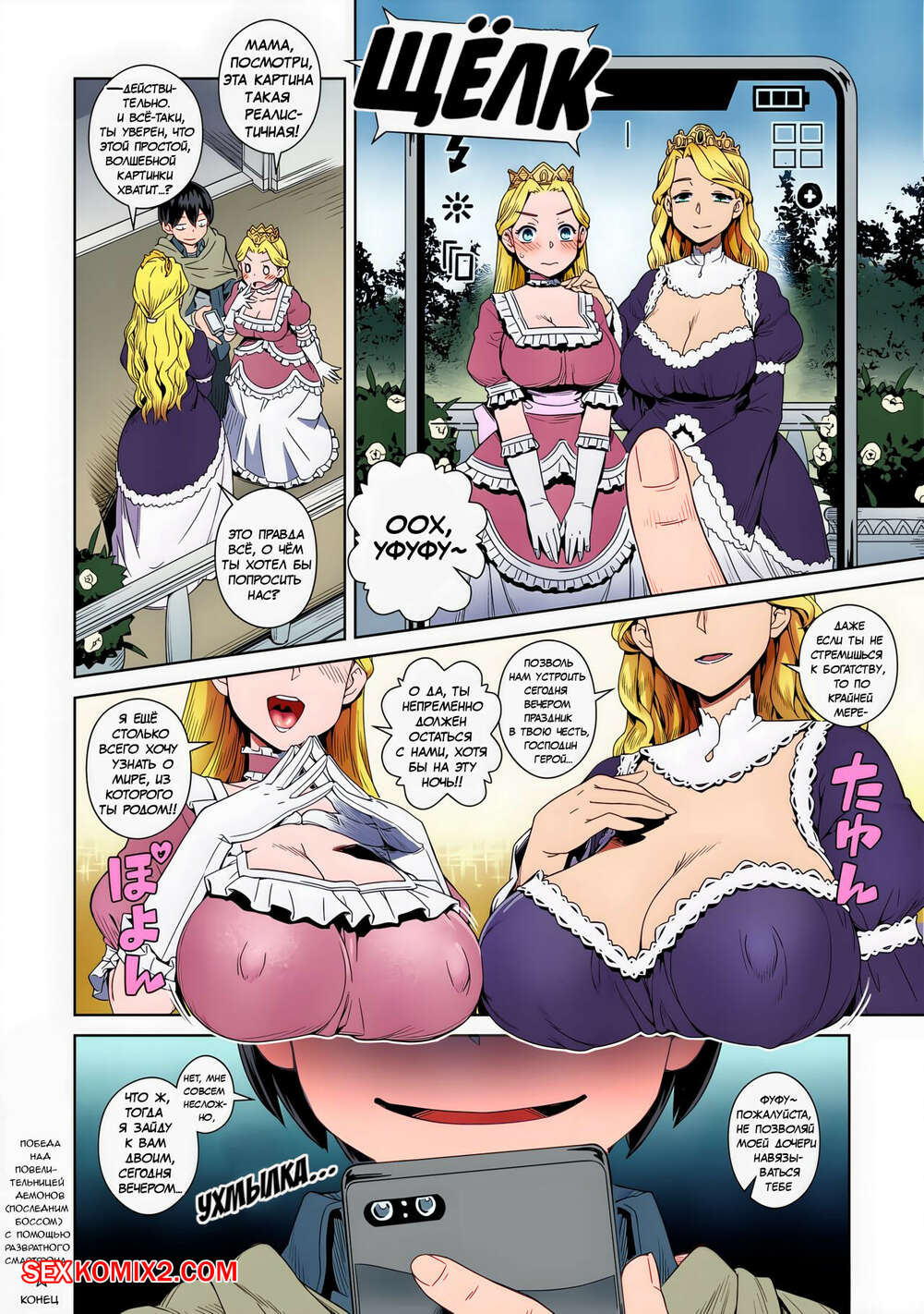 Порно комикс Победа над Повелительницей Демонов с помощью развратного смартфона. Kousuke Парень встречает горячую повелитьницу демонов и решает с ней повеселиться. Он раздевает красотку и лижет ее пизденку, после чего хорошенько ее трахает.