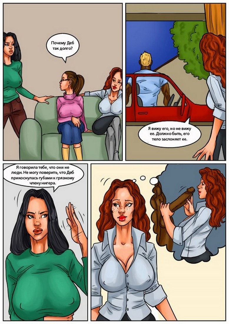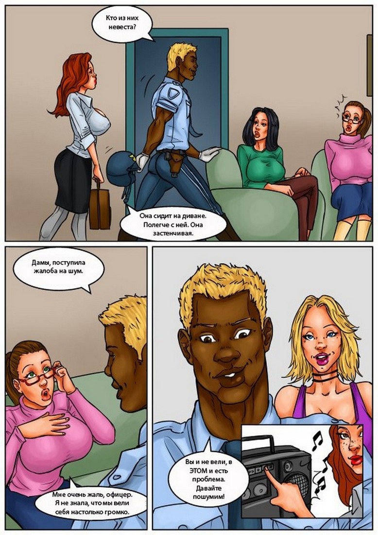 Порно комикс «Женская ночь (Girls night out)». Смотрите в этом комиксе о сиськастых девушек, она устроили праждник в честь свадьбы своей подруги. Но она очень застенчивая девушка, у неё был только один мужчина – это её будущий муж. Чтобы это исправить девушки пригласили чернокожего стриптизера, такого подарка будущая невеста не ожидала. Парень начал раздеваться под эротическую музыку и все дамы в комнате очень возбудились, а когда увидели его огромный черный член, попросили виновницу торжества его пососать. После такого, она уже просто не реально хотела трахаться…