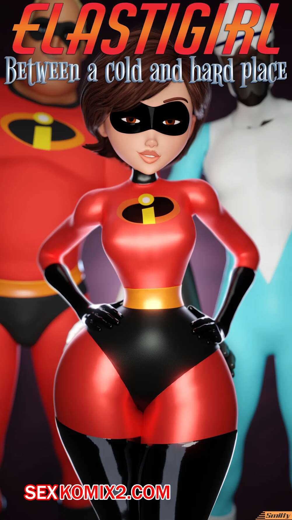Порно комикс Суперсемейка. Между холодом и наковальней. Between a cold and a hard place. smitty34 Эластика осталась наедине со своим мужем и его другом Фреоном. Парни достали свои члены и красотка стала им отсасывать, после чего дала парням выебать себя во все дырочки.