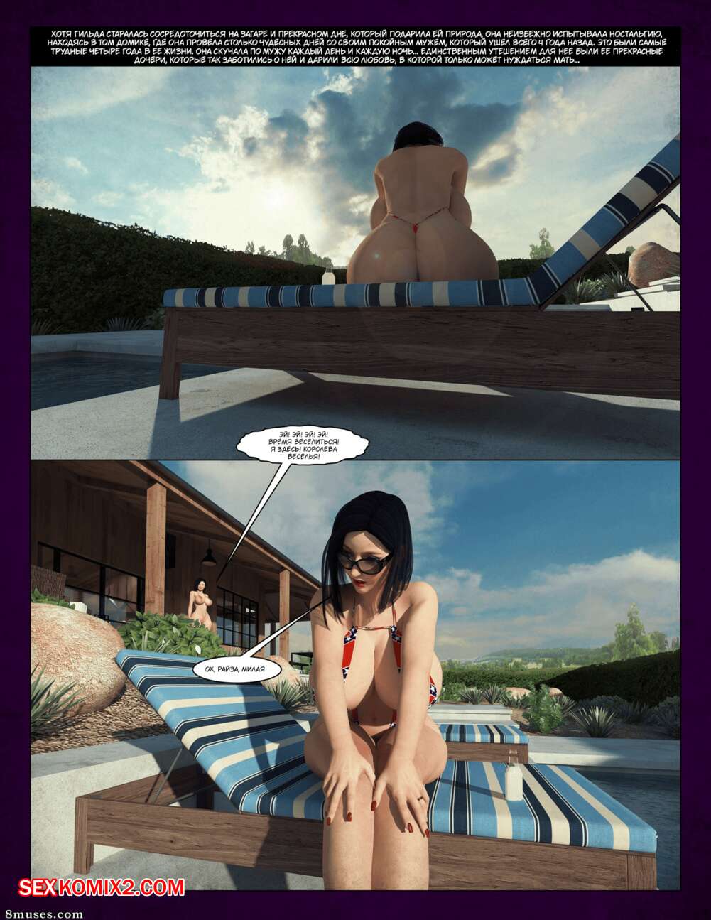 Порно комикс Purple Vacation. Часть 1 и 2 и 3. Moiarte Горячие милфы с шикарными телами без ума от больших черных хуев. Красотки раздеваются перед своими новыми дружками и отсасывают у них, после чего дают себя хорошенько выебать.