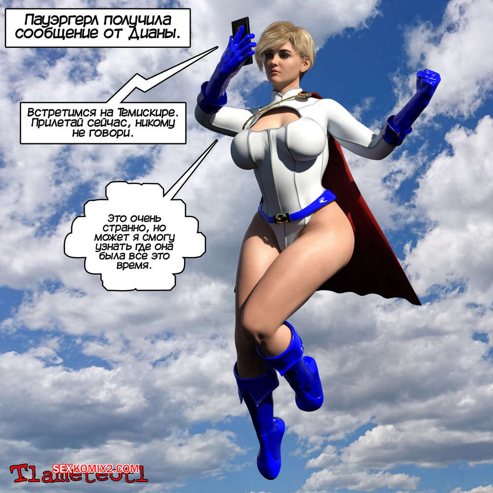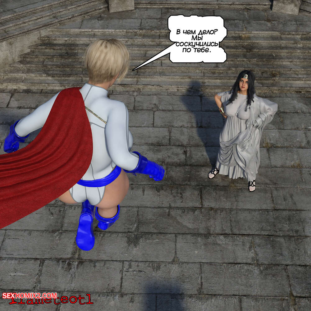 Порно комикс DC. Гарем правосудия. Часть 2. Пауэргерл. Harem of Justice. Powergirl. Tlameteotl Пауэргерл получила сообщение от Чудо Женщины, которая пригласила подругу на Темискиру. Встретившись на острове, Диана стала целовать блондиночку, желая устроить с ней страстную еблю.