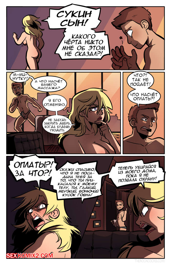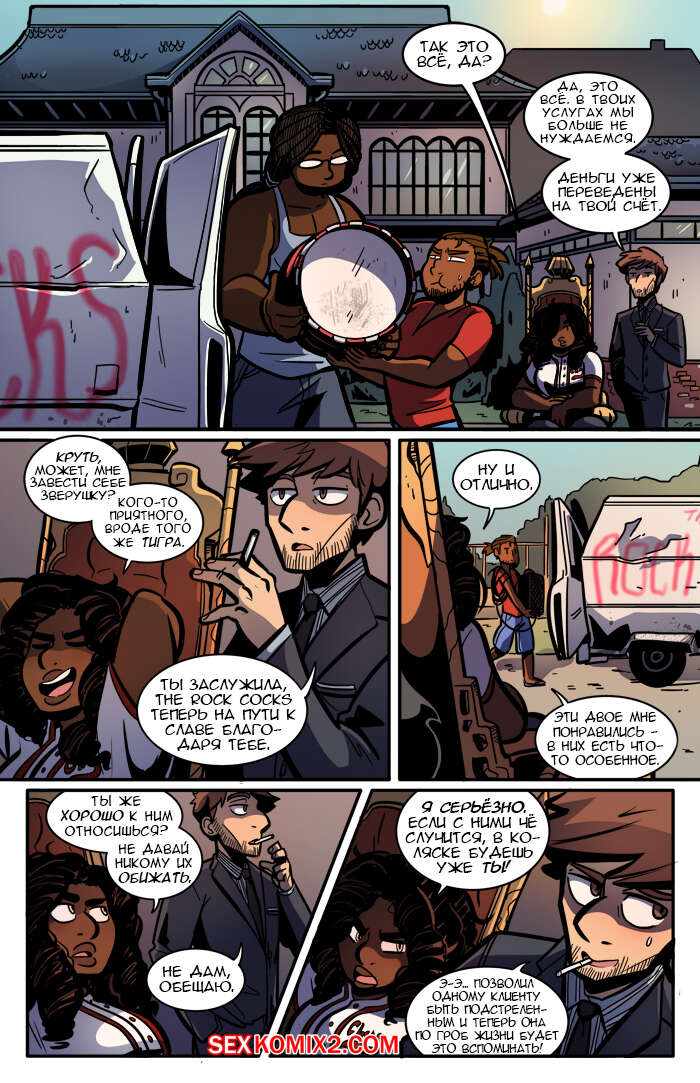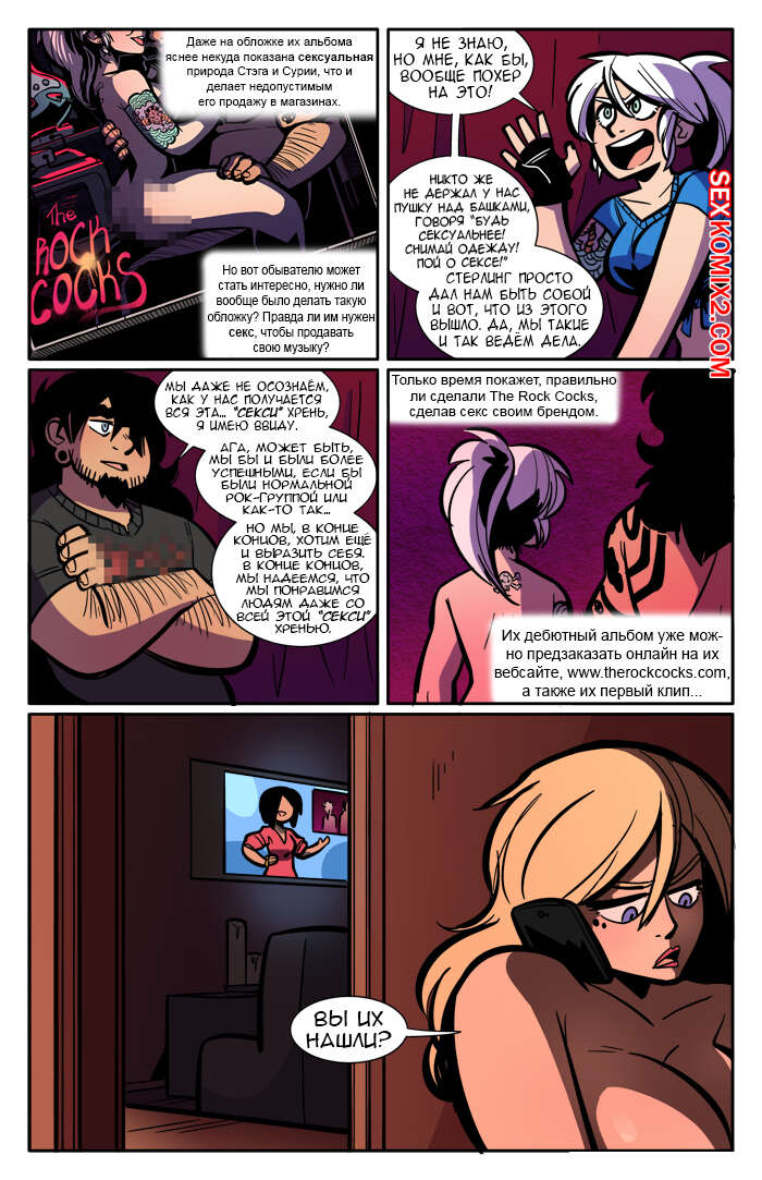 Порно комикс Рок хуй. The Rock Cocks. Часть 5. Хватит прелюдий Во время массажа сексуальная блондинка заметила по телевизору репортаж о новой рок группе. Она сразу отменила массаж, хотя она могла хорошенько поебаться с серьезно настроенным парнем. Она отменила все и занялась их поисками, пока в этот момент их менеджер ебался со своим дружком, а сама рок парочка наслаждалась своей славой, празднуя это отличным сексом.