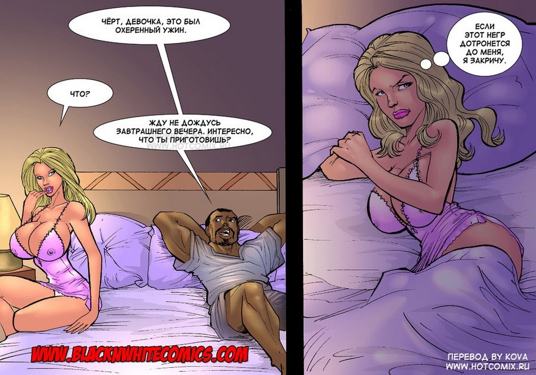 Порно комикс «Обмен женами». Это новое реалити-шоу, в котором на несколько дней мужья обмениваются своими женами, и за всеми событиями следит скрытая камера. В этот раз женами обменялись чернокожий парень из гетто и обеспеченный из дорогого района. Днём пока на них смотрят видео камеры они показывают бытовые проблемы и как герои с ними справляются, оказавшись в новых условиях. А ночь, когда все камеры выключены, участники проекта лежаться в одну кровать с чужими супругами. Вот тут та и начинается самое интересное.