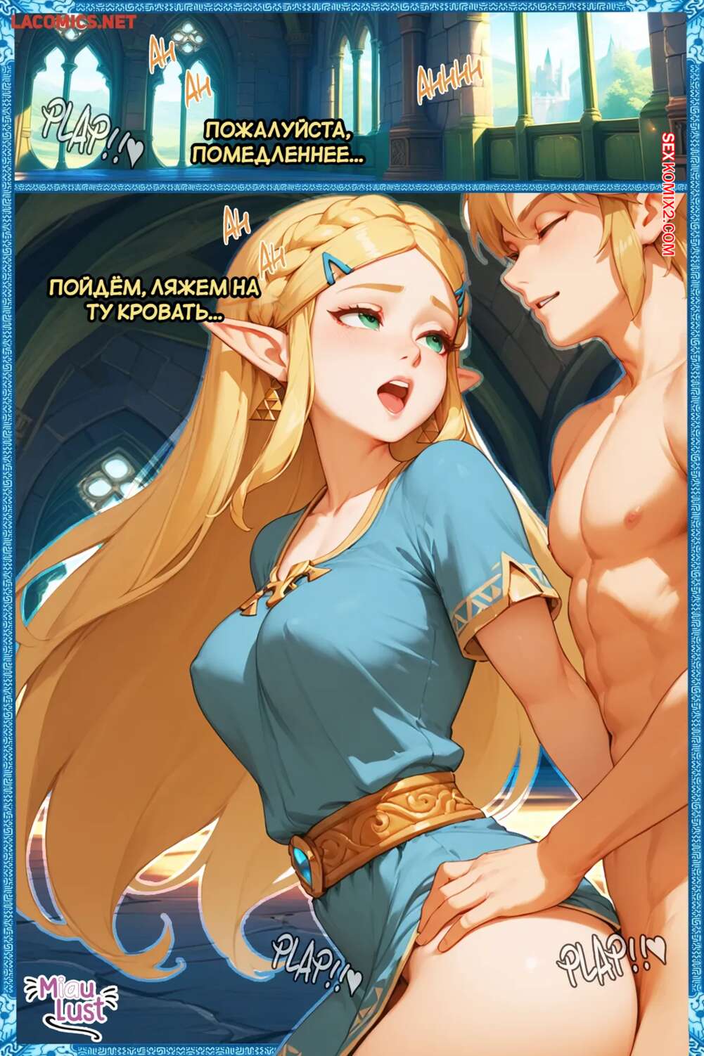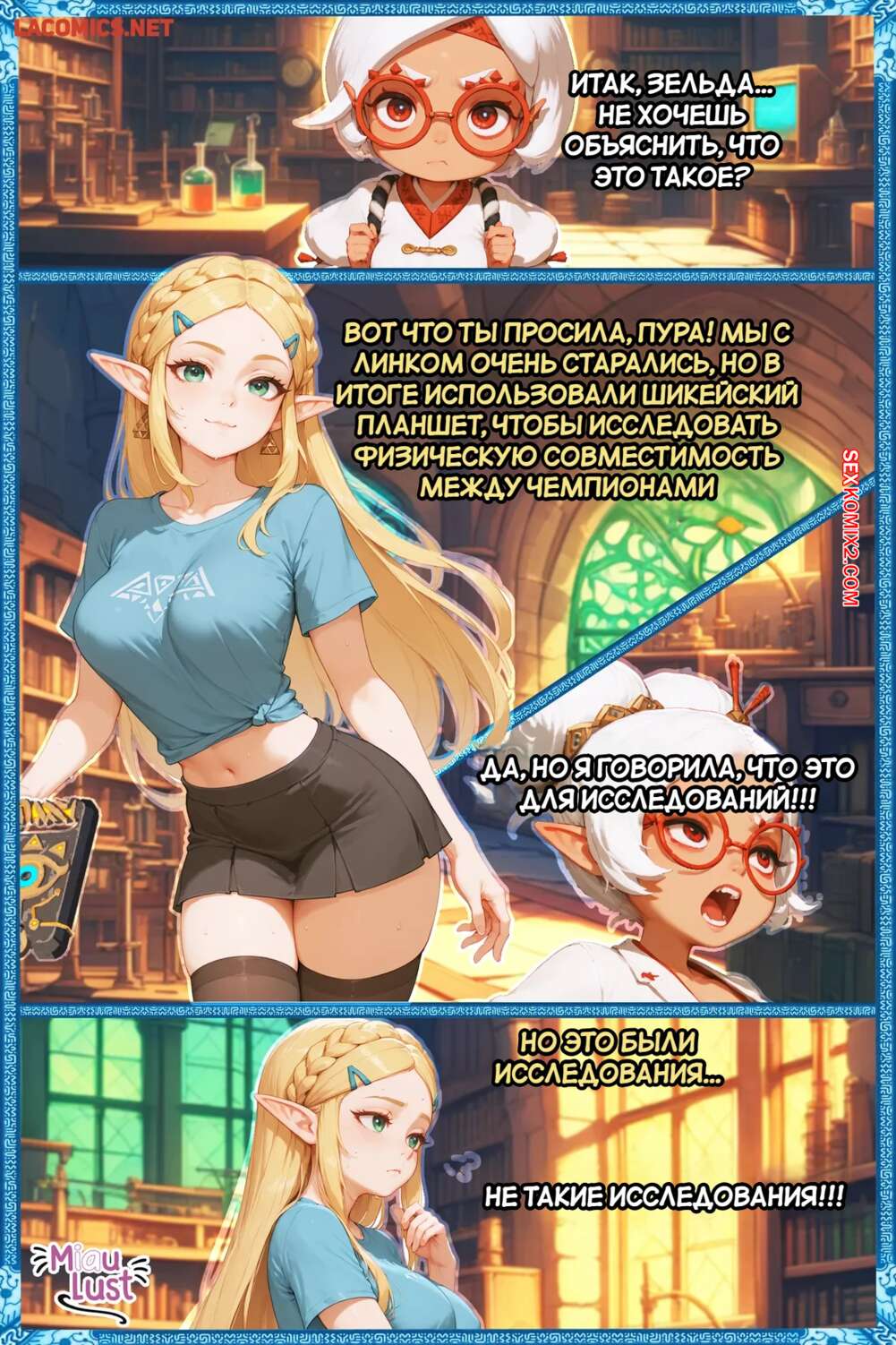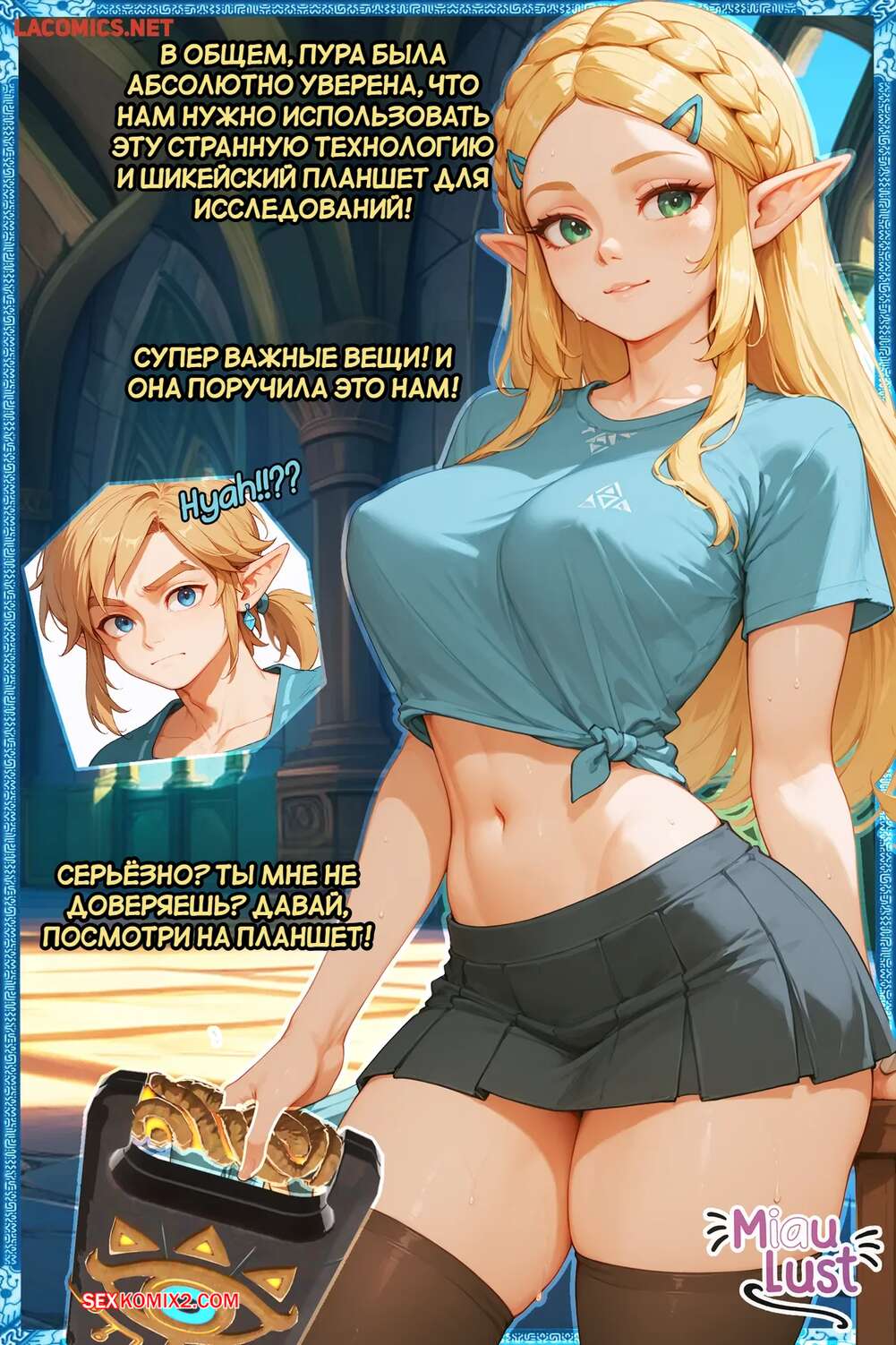 Порно комикс Legend Zelda. Дыхание похоти. Breath of the Lust. MiauLust. Красотка Зельда возбуждена и хочет секса, поэтому она отправилась к своему дружку, чтобы он ей помог. Красотка возбудила парня шикарным телом, после чего дала себя трахнуть и кончить в нее.