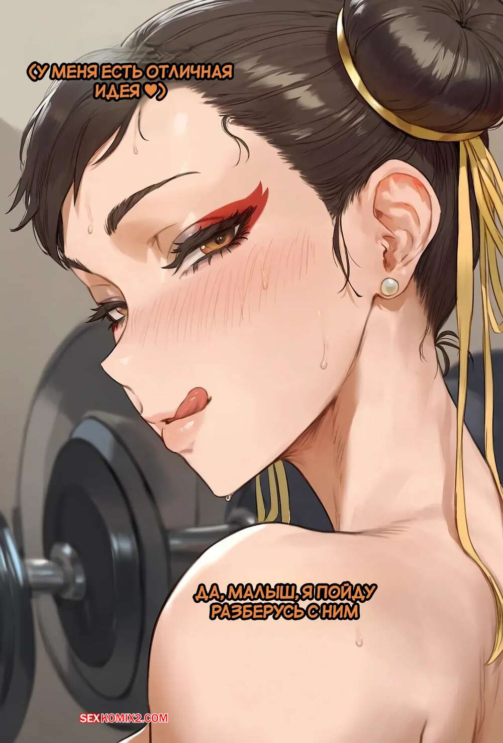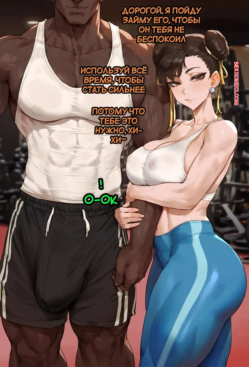 Порно комикс Street Fighter. Чун Ли находит нового партнера по тренировкам. Potions. Красотка Чун Ли пришла в тренажерный зал, где положила глаз на темнокожего парня. Девушка ведет его в раздевалку, где отсосала хуец парня и дала выебать свою пизденку.