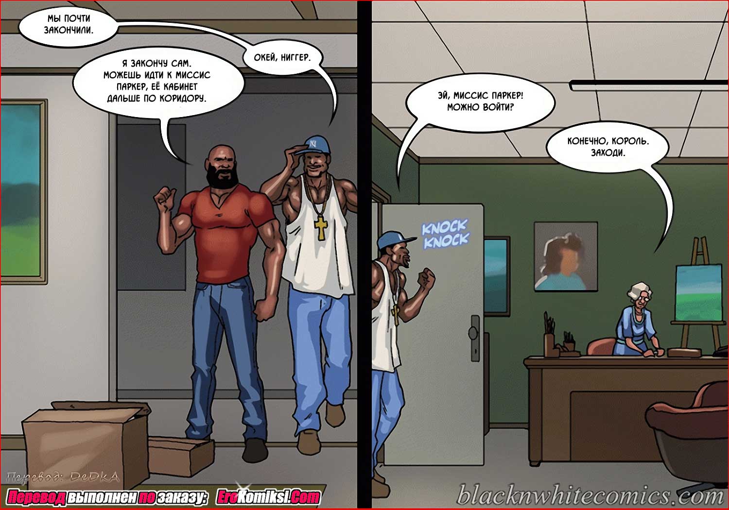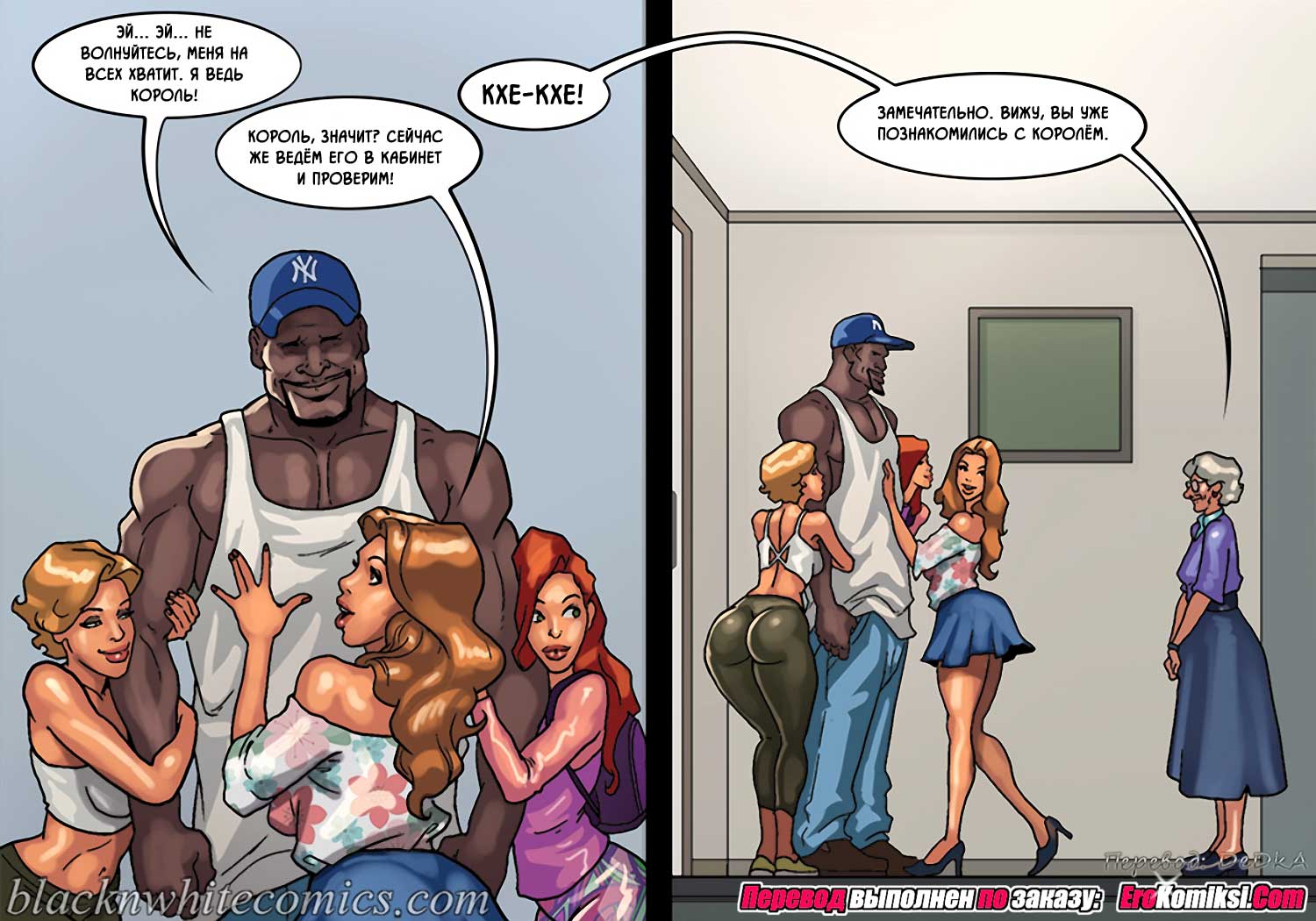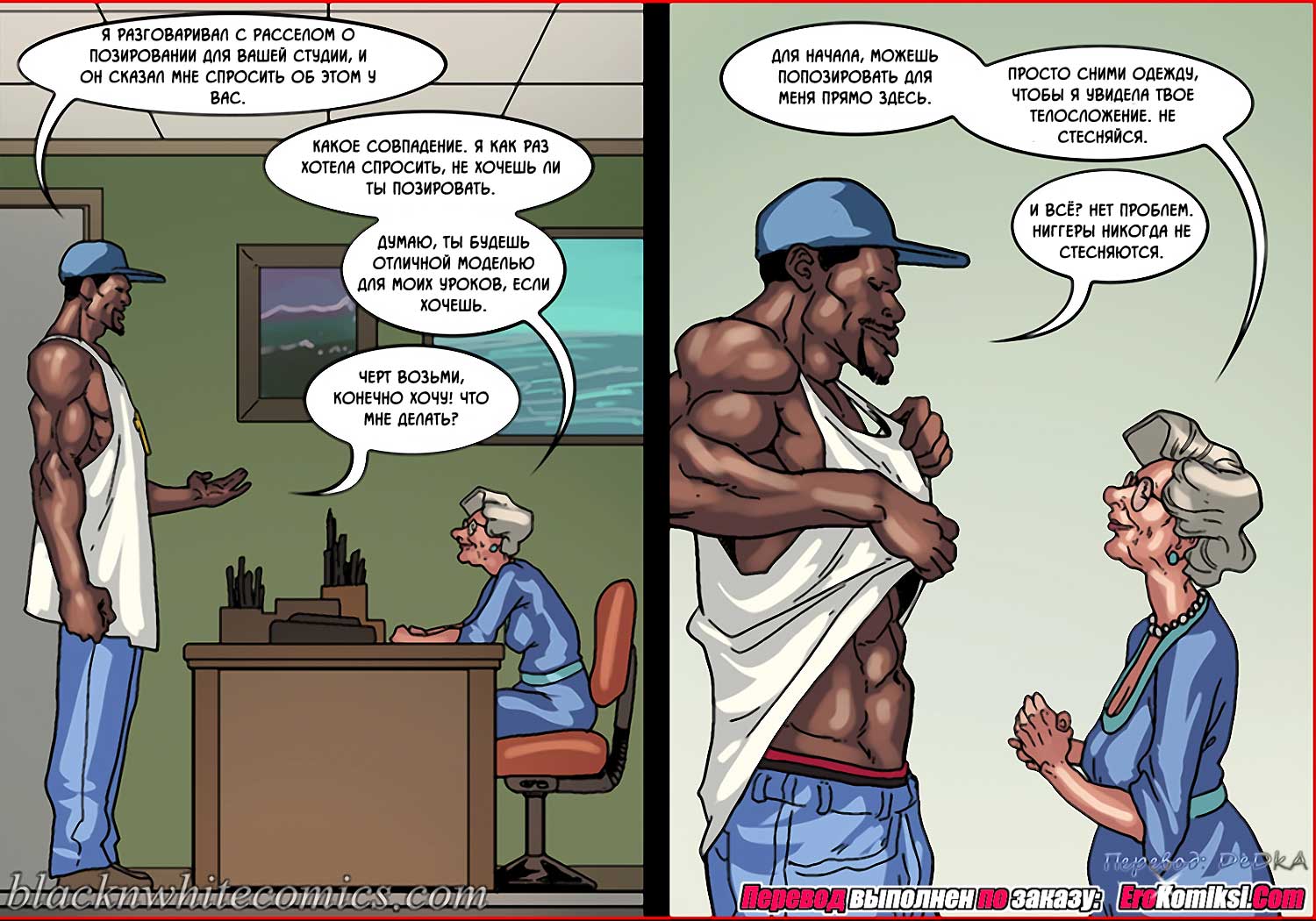 Порно комикс «Художественный кружок. Часть 2». В прошлой части комикса сексуальные художницы приглашали чернокожего парня, чтобы нарисовать его голое тело. Но они так сильно возбудились, что захотели заняться с ним сексом в чём он им не отказал и они славно потрахались все вместе. Теперь эти же художницы организовали выставку с картинами, на которых был изображён этот парень и они пригласили его посетить эту выставку, на которой девушки снова захотели отведать чёрного члена. Они принялись таскать бедного паренька в туалет по очереди и насаживаться на него своими мокрыми кисками.